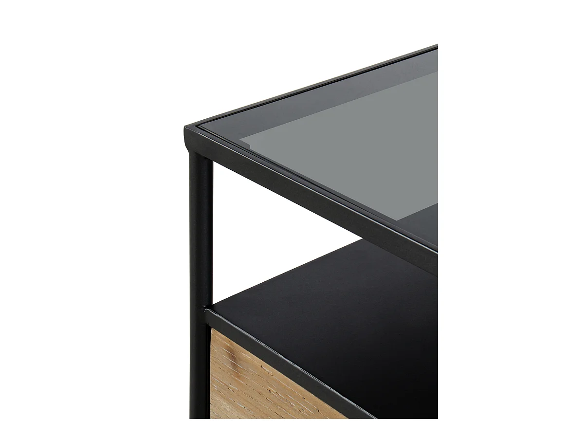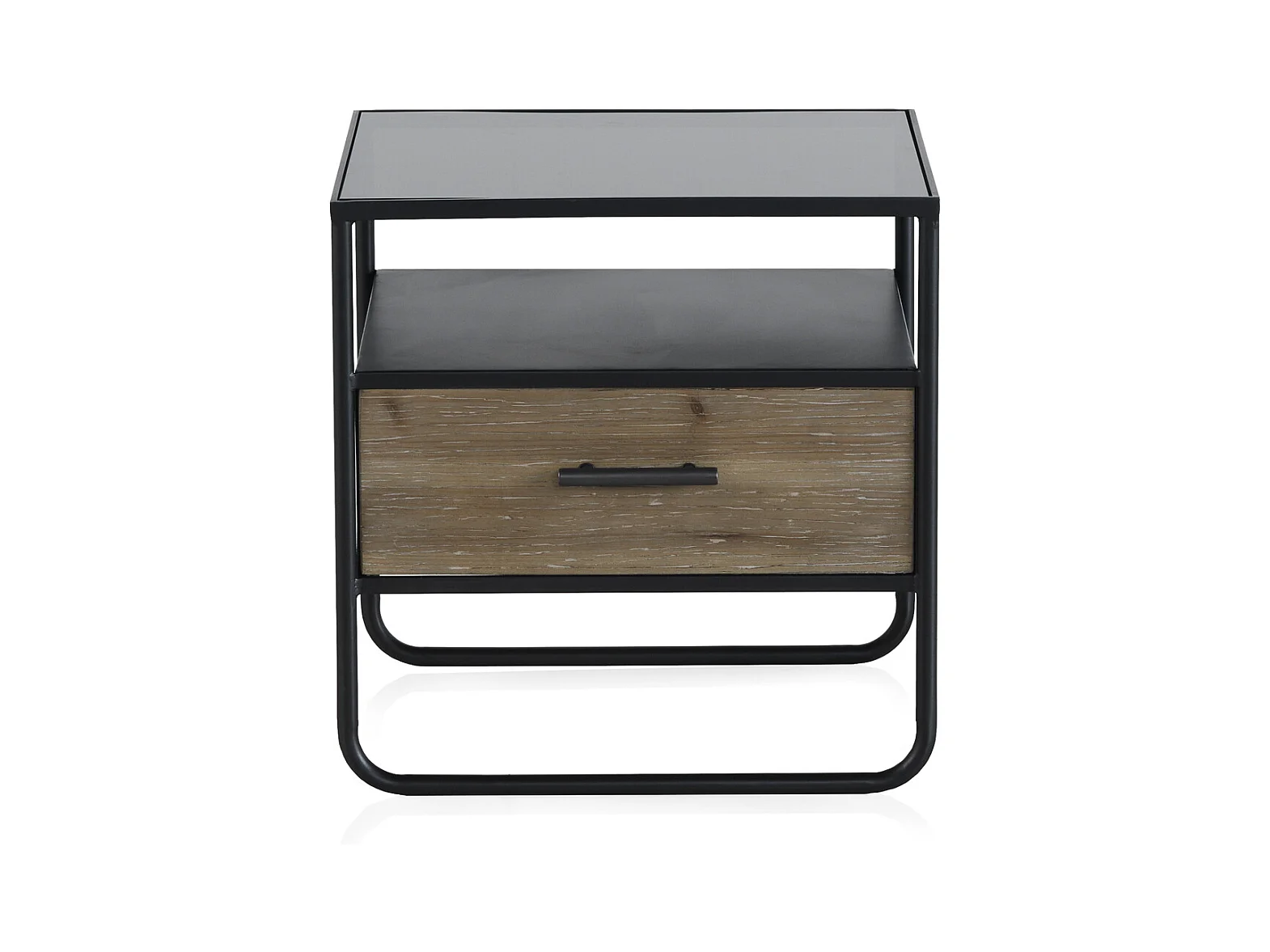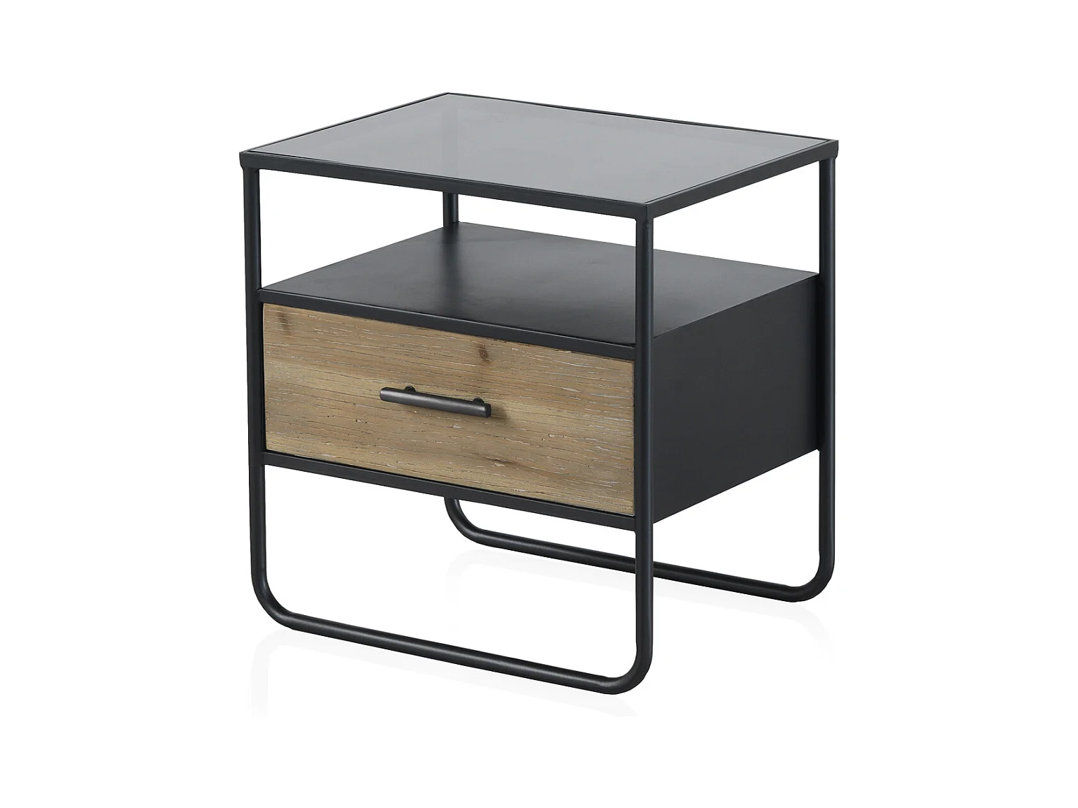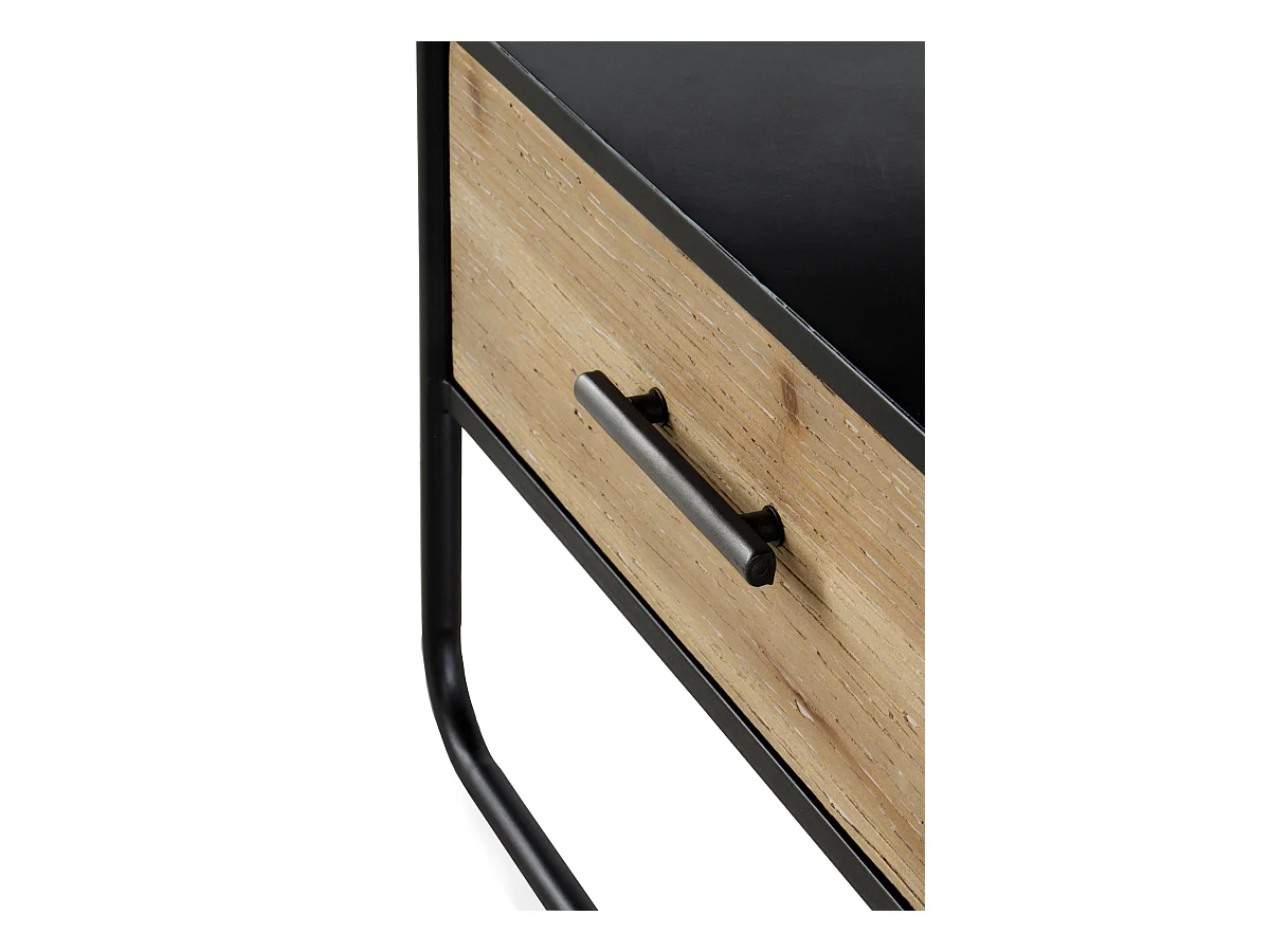 Mesita de noche 1 cajón de madera de abeto y hierro