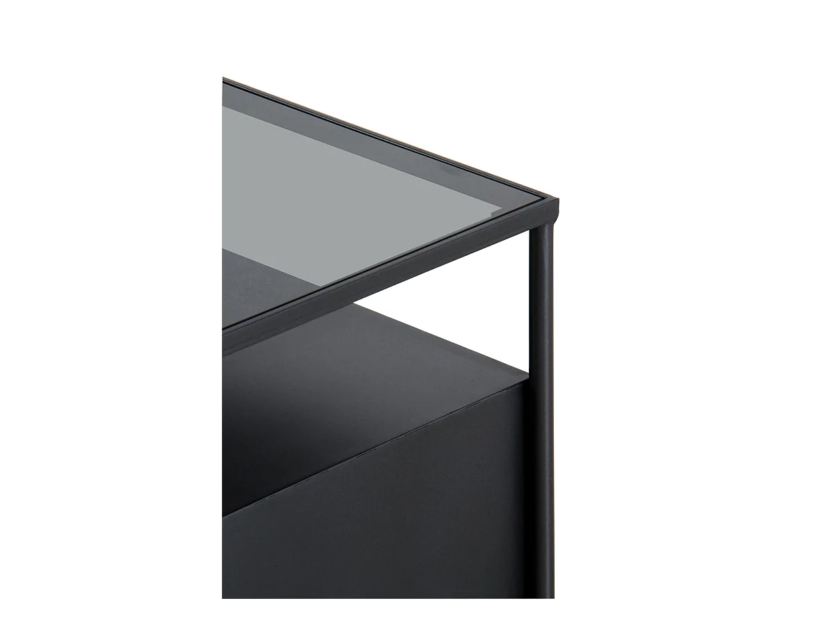 Mesita de noche polipiel y nogal con tapa de cristal negro 7162 ANGEL CERDA