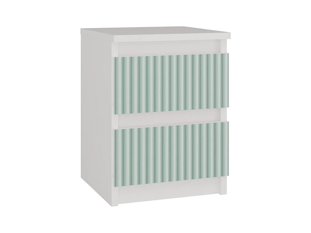 Mesita de Noche 2 Cajones Color Blanco Estampado Verde – 40x30x30 cm – Cajones con Guías Suaves – Diseño Elegante y Seguro