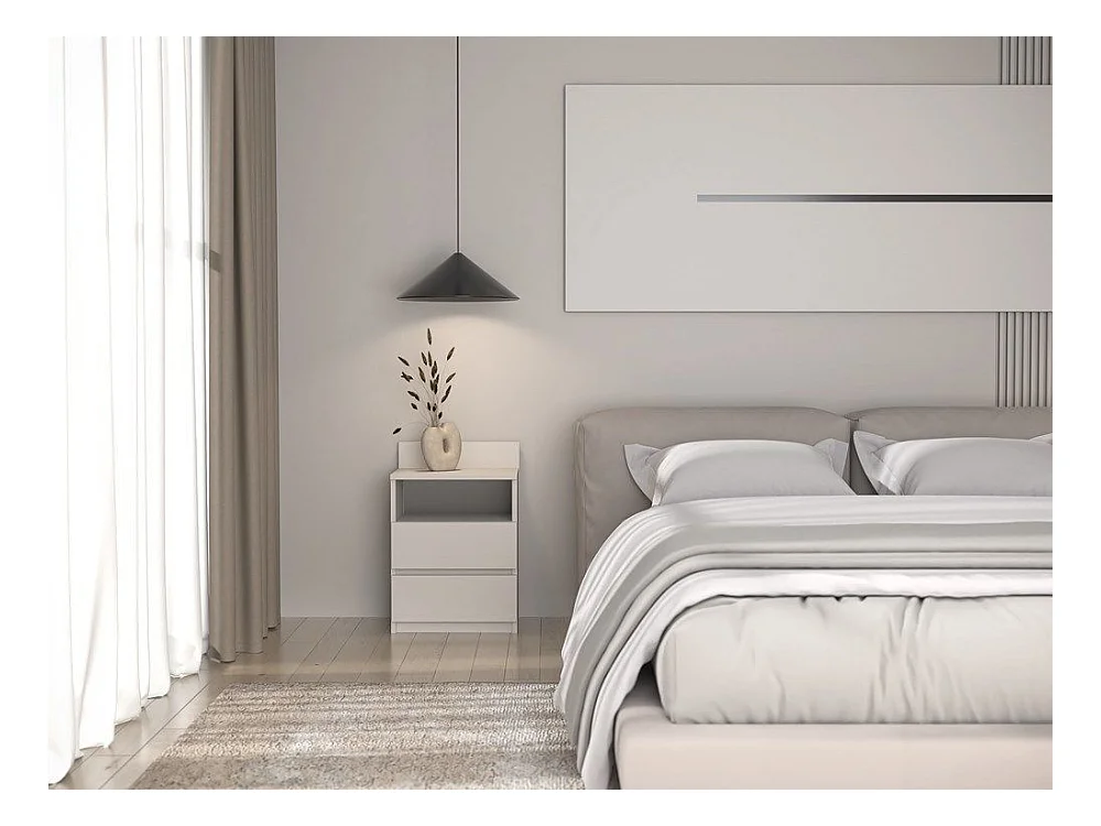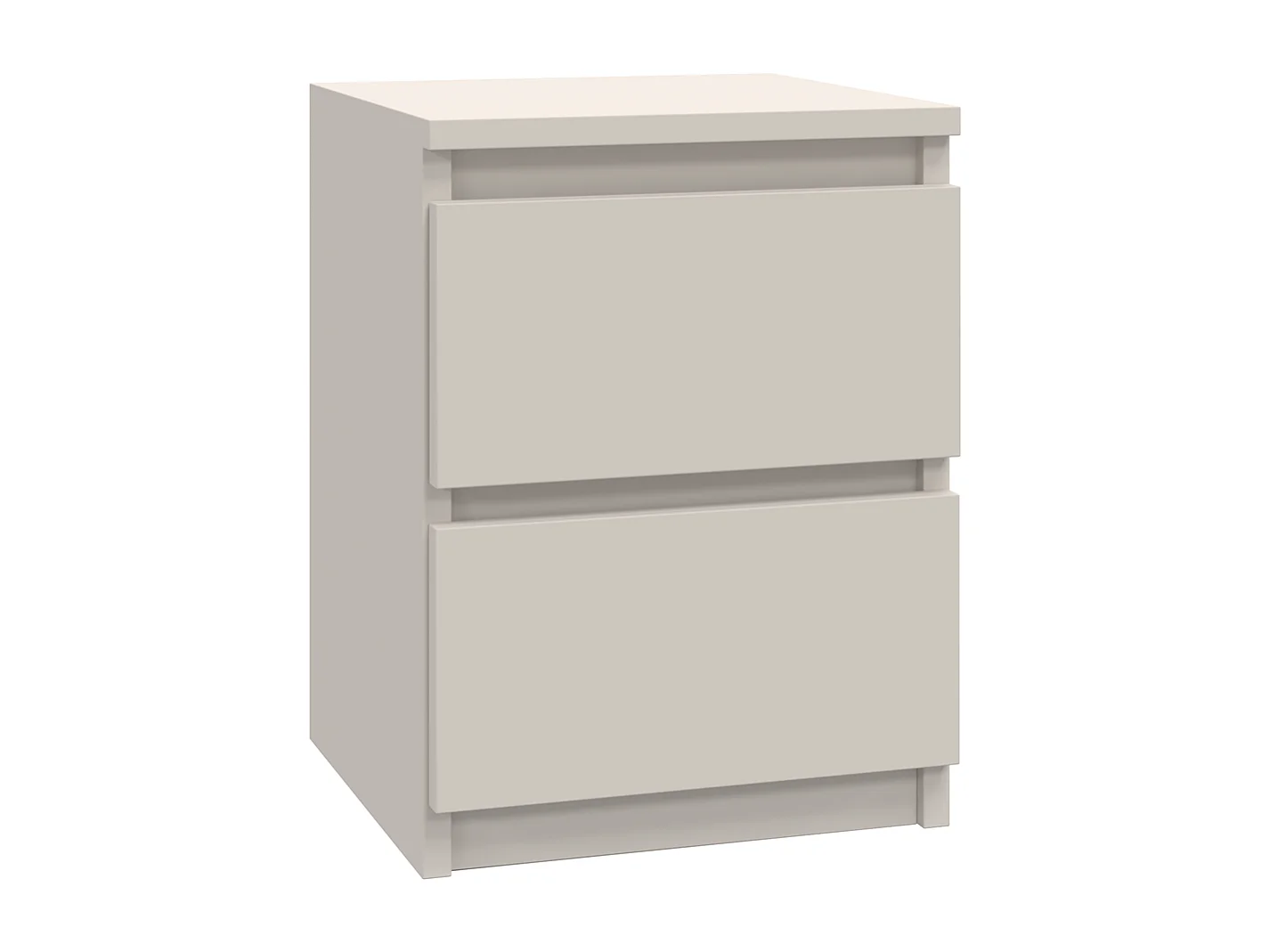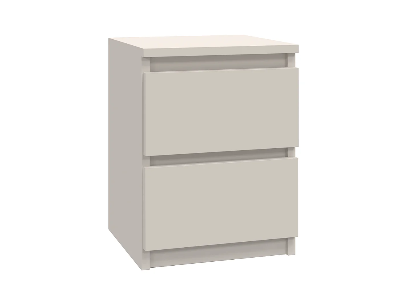 Mesita de Noche 2 Cajones Color Cashmere – 40x59x32 cm – Cajones con Guías Suaves – Diseño Elegante y Seguro