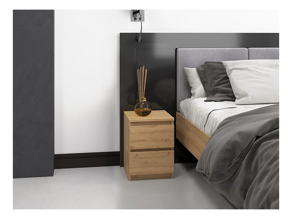 Mesita de Noche 2 Cajones Color Roble/Antracita – 40x30x30 cm – Cajones con Guías Suaves – Diseño Elegante y Seguro