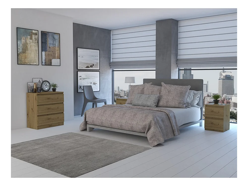 Mesita de Noche 3 Cajones, Mesilla de Dormitorio, Color Cañón , Medidas: 66 cm (anc) x 39,6 cm (Fo) x 63,8 cm (Al)