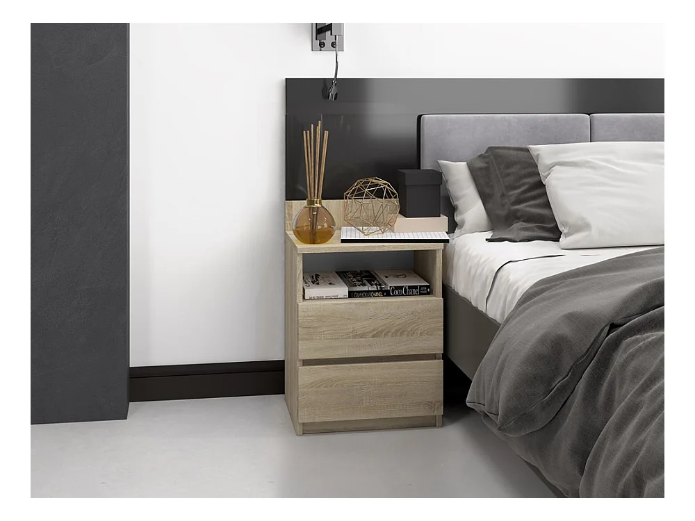 Mesita de Noche 2 Cajones Color Roble Sonoma – 40x30x30 cm – Cajones con Guías Suaves – Diseño Elegante y Seguro