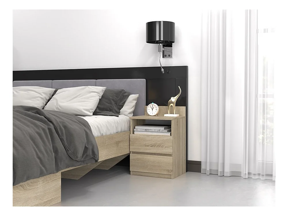 Mesita de Noche 2 Cajones Color Roble/Antracita – 40x30x30 cm – Cajones con Guías Suaves – Diseño Elegante y Seguro