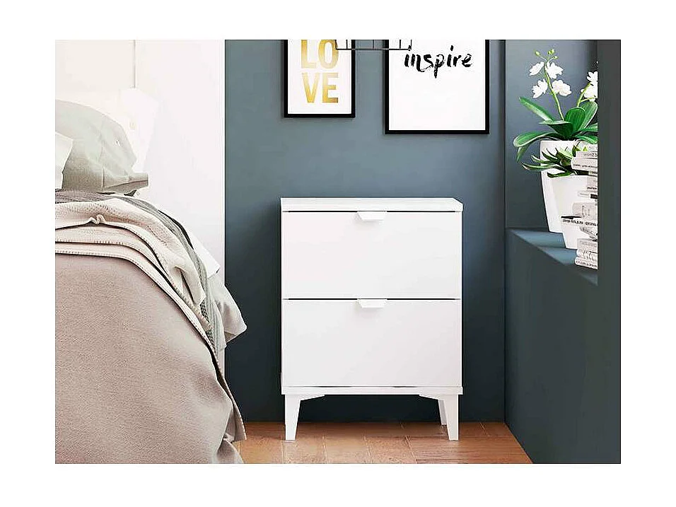 Mesita de noche 2 cajones en acabado blanco 56 cm(alto)43 cm(ancho)34 cm(fondo)