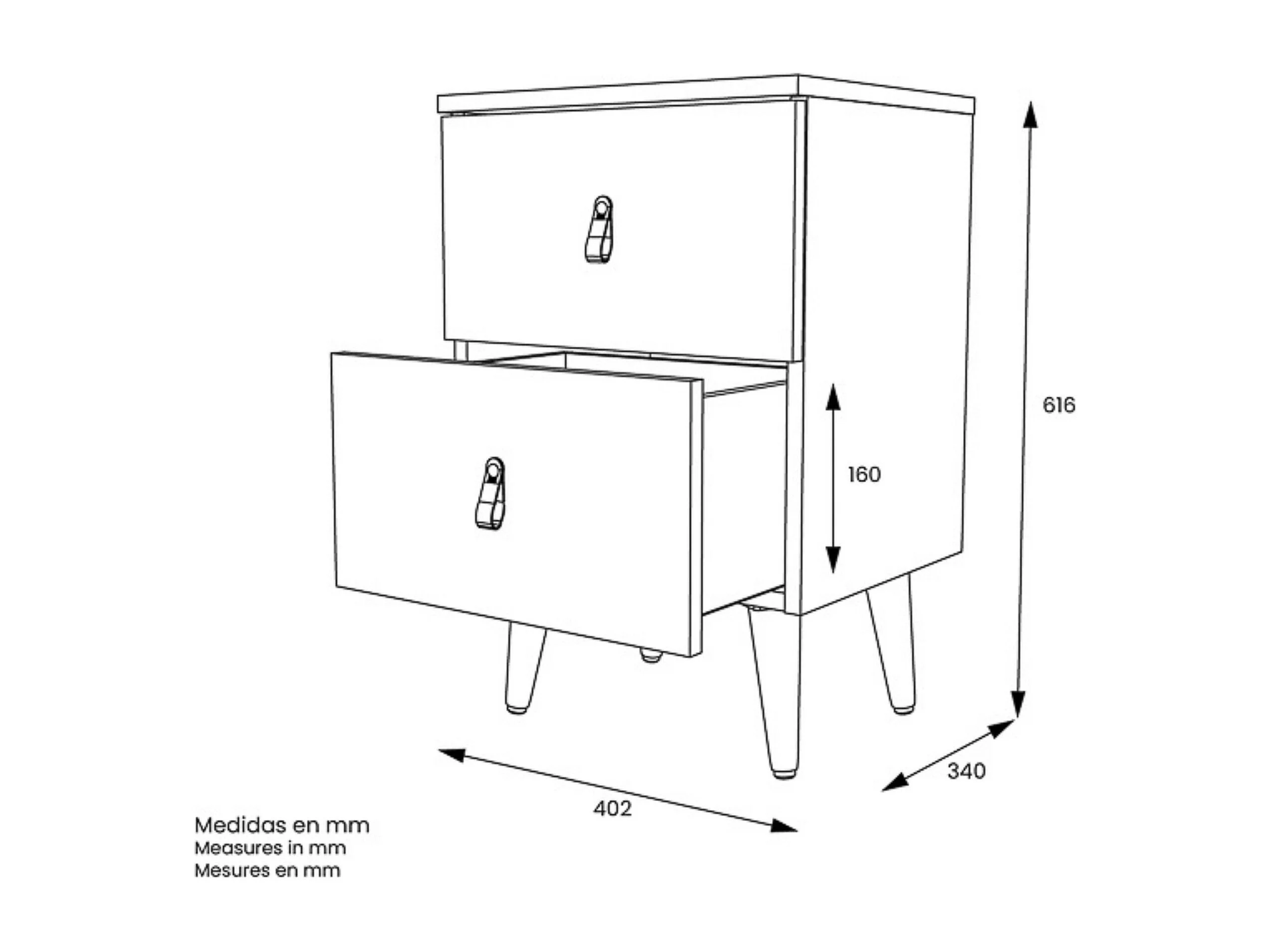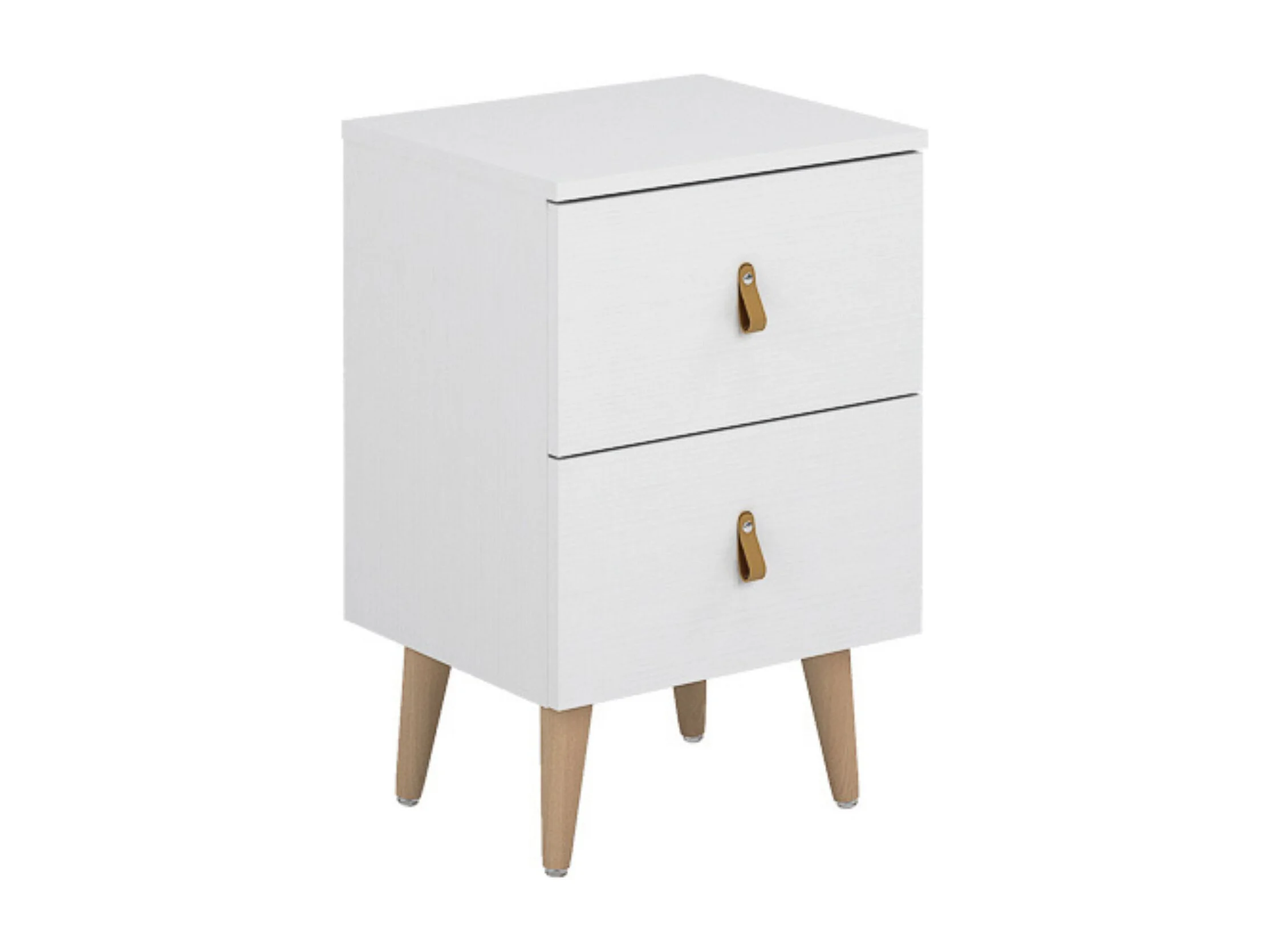 Mesita de Noche 2 cajones, Mesilla de Noche, Color Blanco, Medidas: 43 cm (Ancho) x 34 cm (Fondo) x 56 cm (Alto)