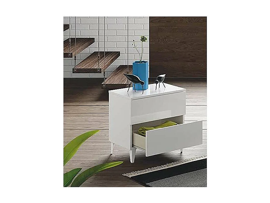 Mesita de noche 2 cajones en acabado blanco 56 cm(alto)43 cm(ancho)34 cm(fondo)