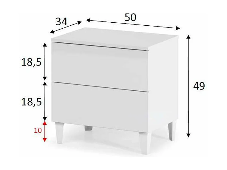 Mesita de noche 2 cajones Pekin acabado blanco 49 cm(alto)50 cm(ancho)34 cm(fondo)