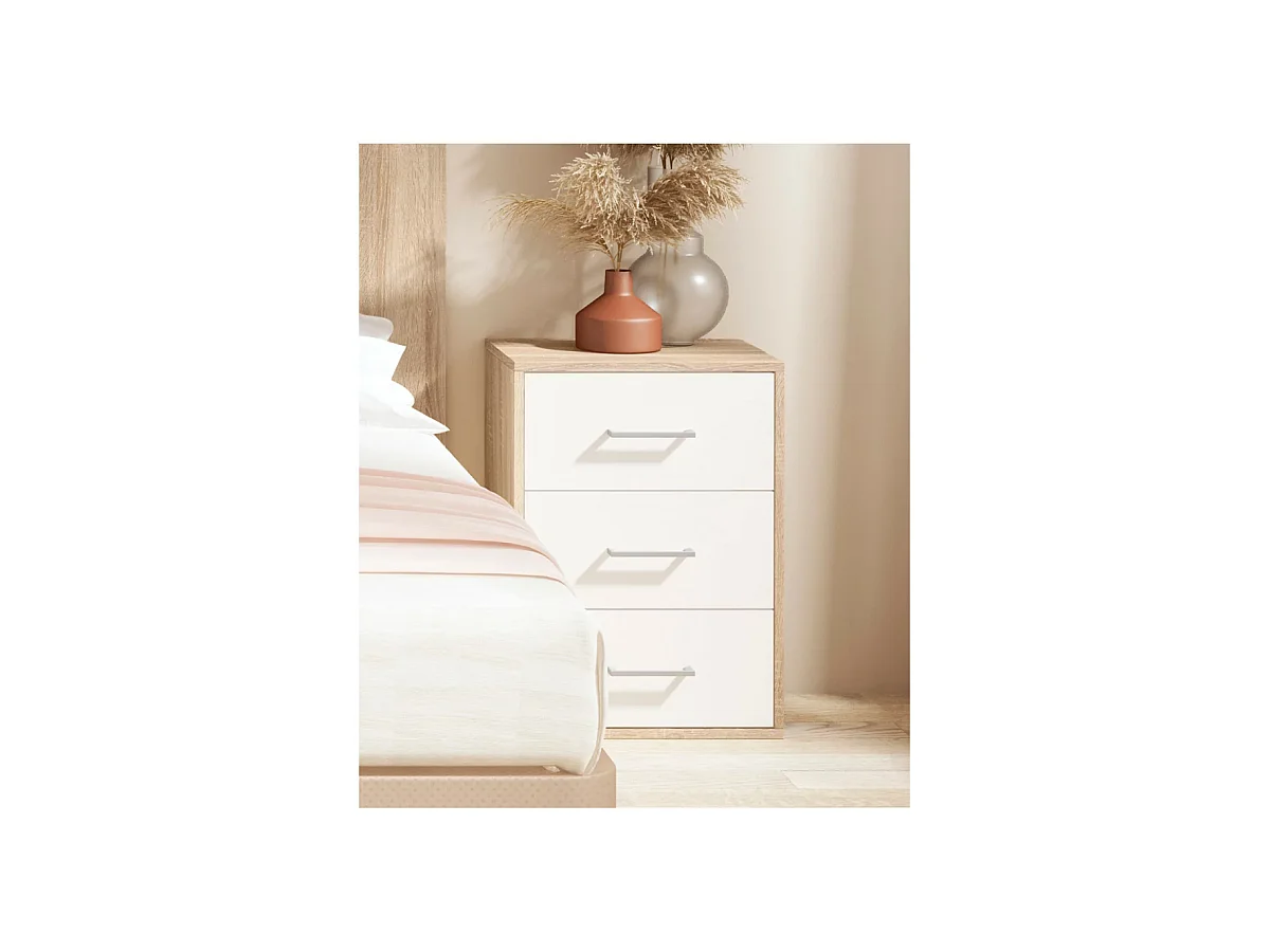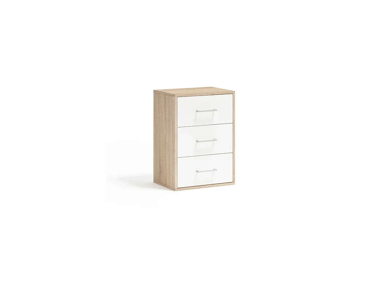 Mesita de noche 3 cajones acabado cambrian/blanco, 63cm(alto) 45cm(ancho) 33cm(fondo)