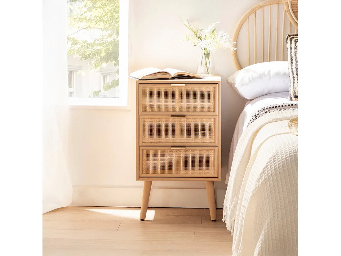 Mesita de noche 3 cajones de Fibra natural Natural 71 x 42- Alis