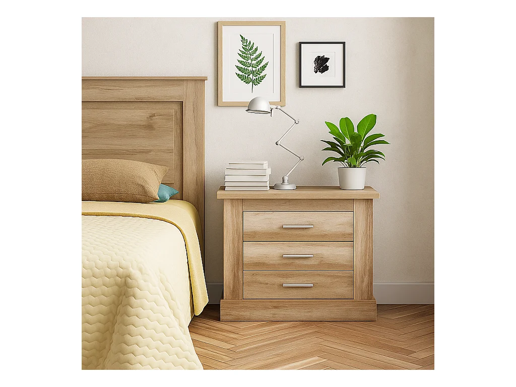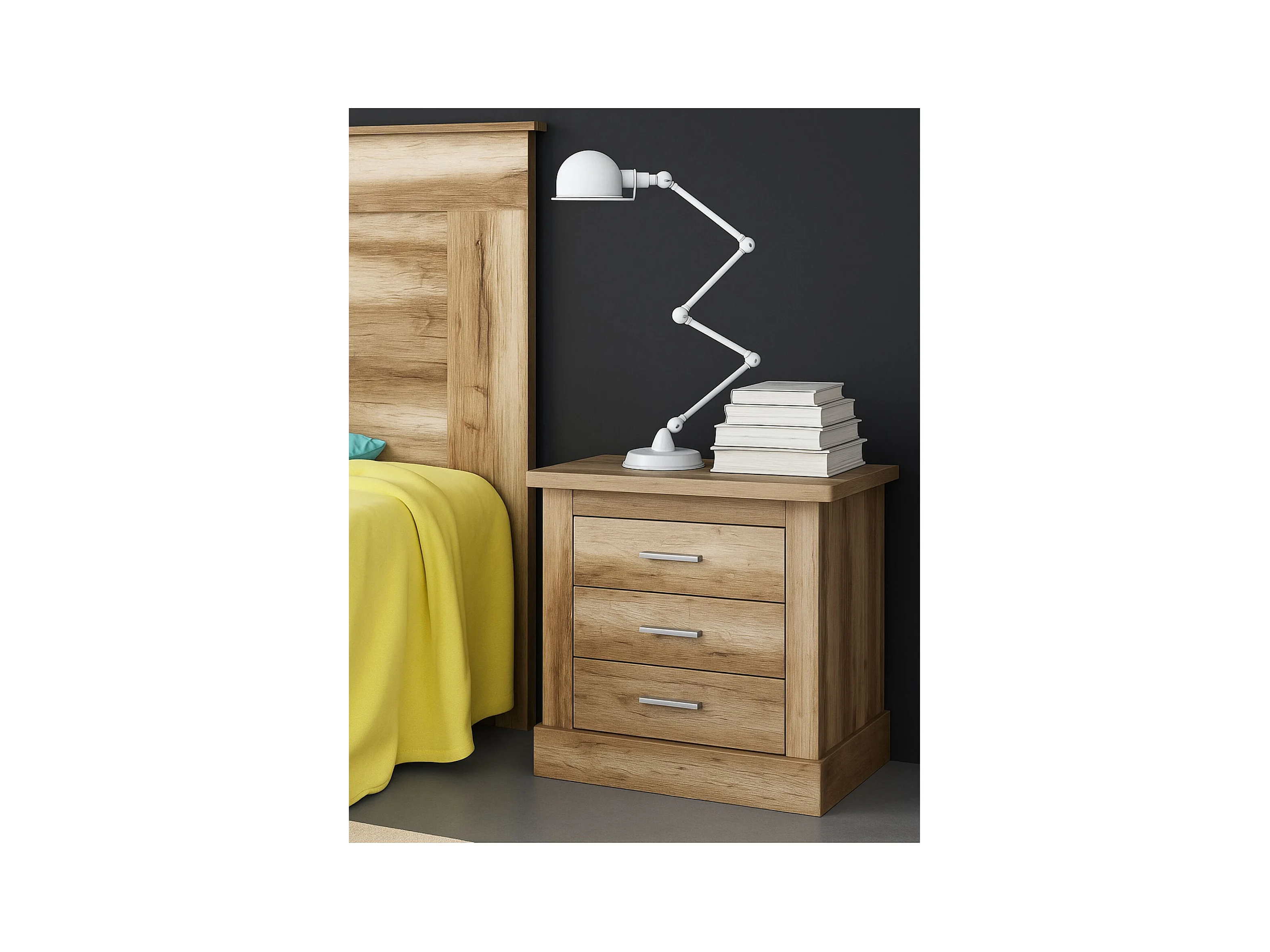 Mesita de Noche 3 Cajones, Mesilla de Dormitorio, Color Cañón , Medidas: 66 cm (anc) x 39,6 cm (Fo) x 63,8 cm (Al)