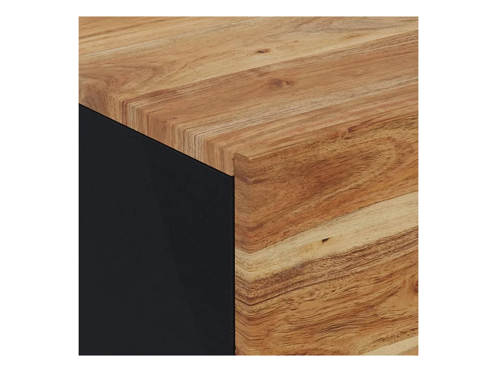 Mesita de noche negra 40x33,5x46 cm madera maciza de mango en bruto