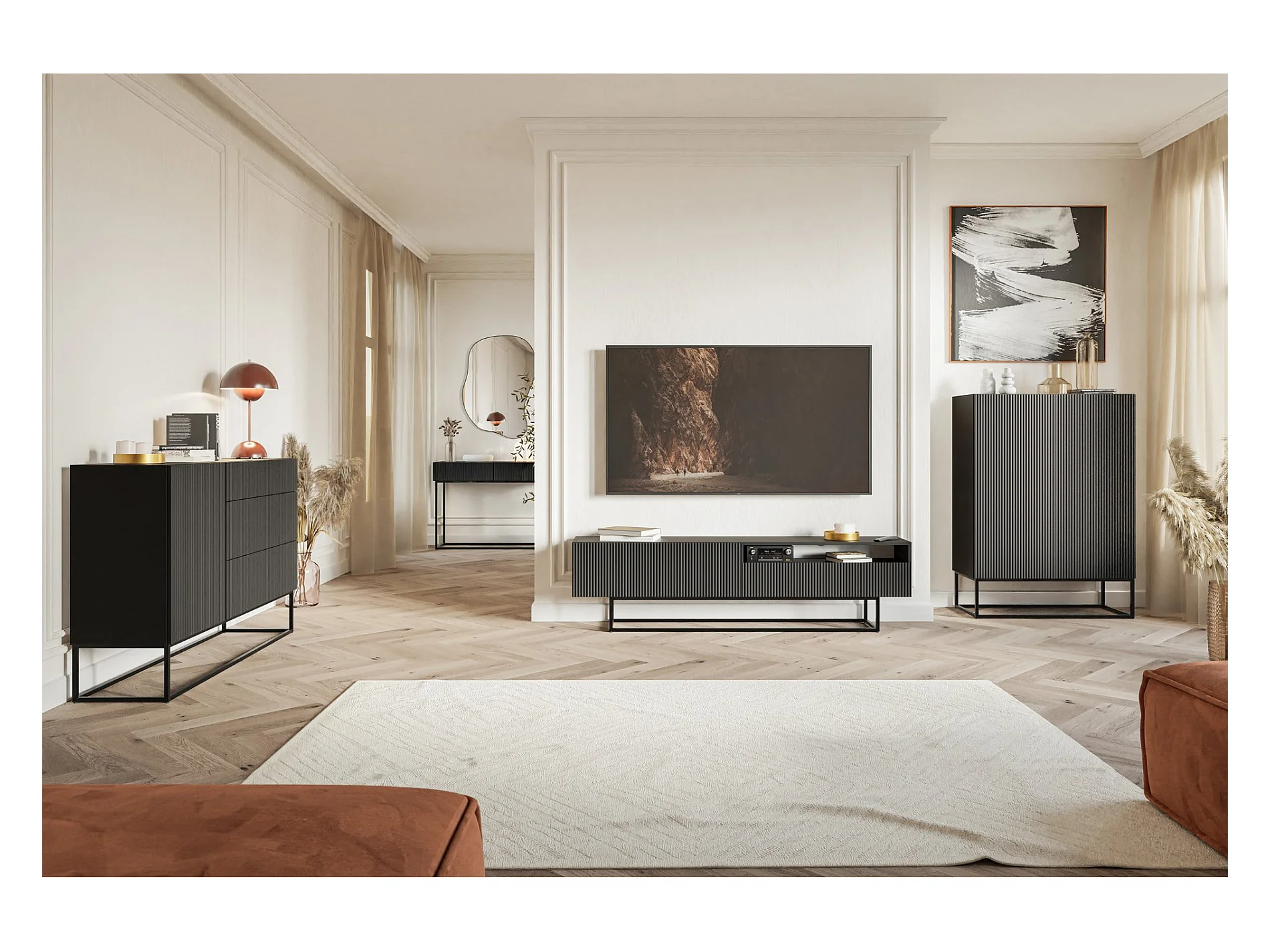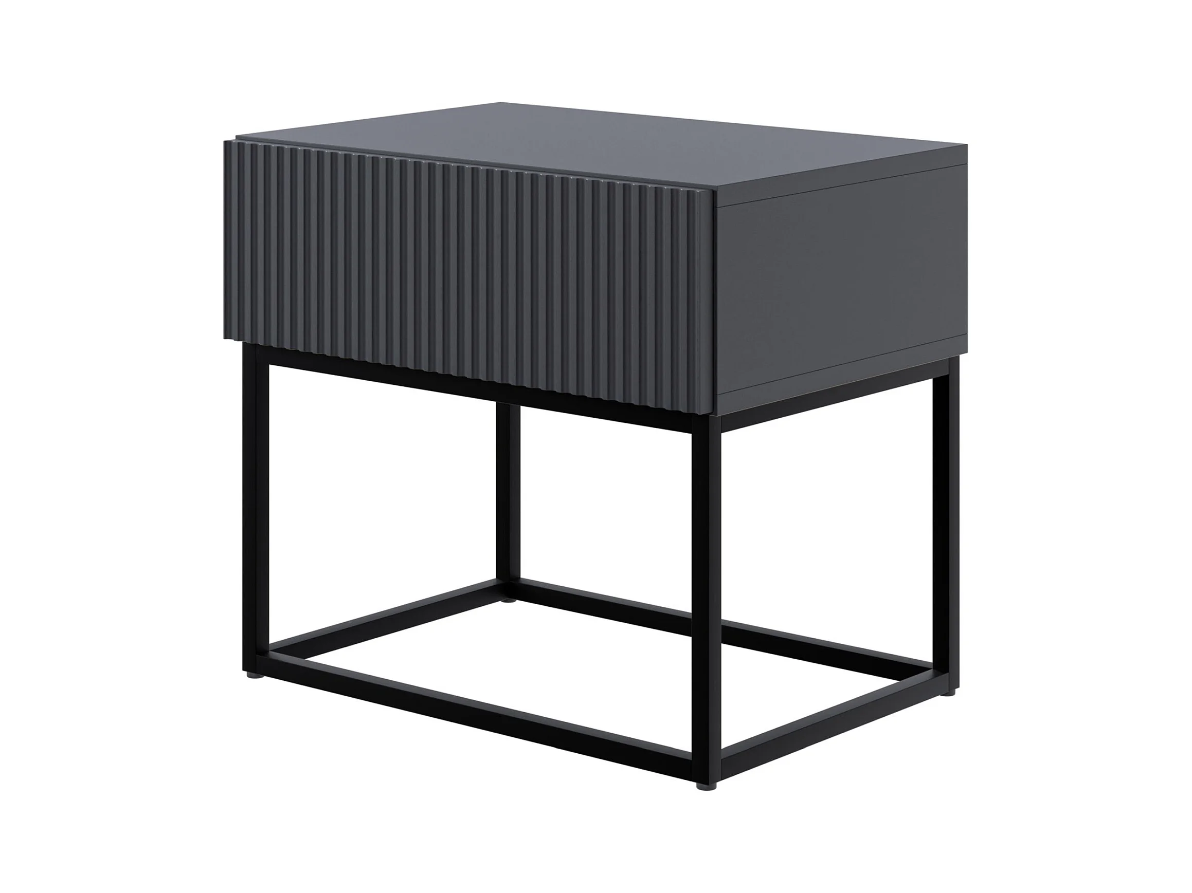 Mesita de noche - con ranuras y cajón - con patas negras - negro - OVARLO