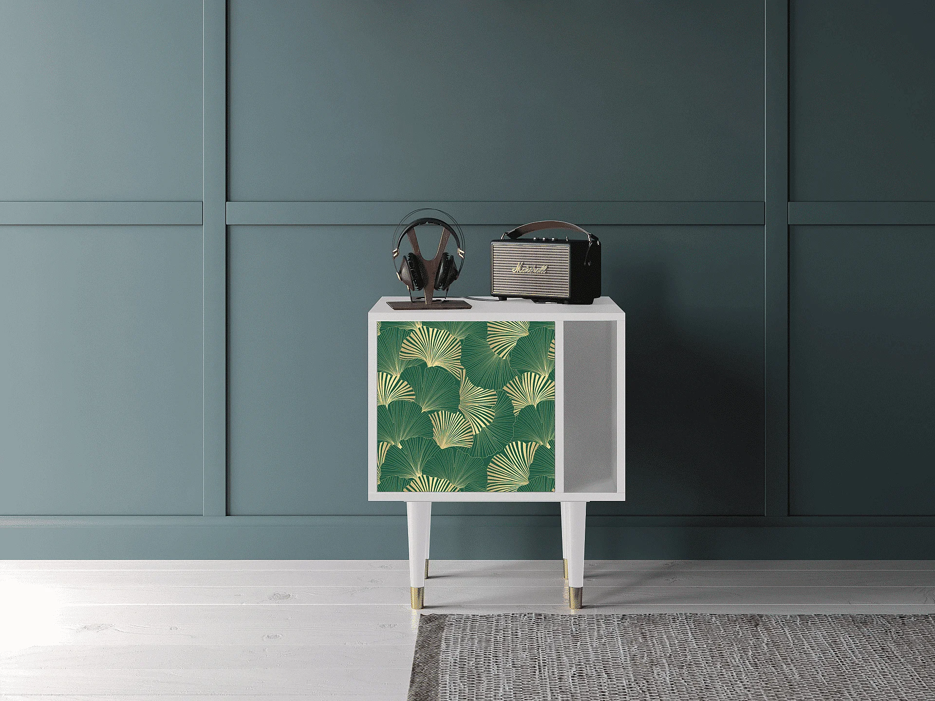 Mesita de noche - 57х69х48 cm - S2 - Gold Ginkgo, Blanco