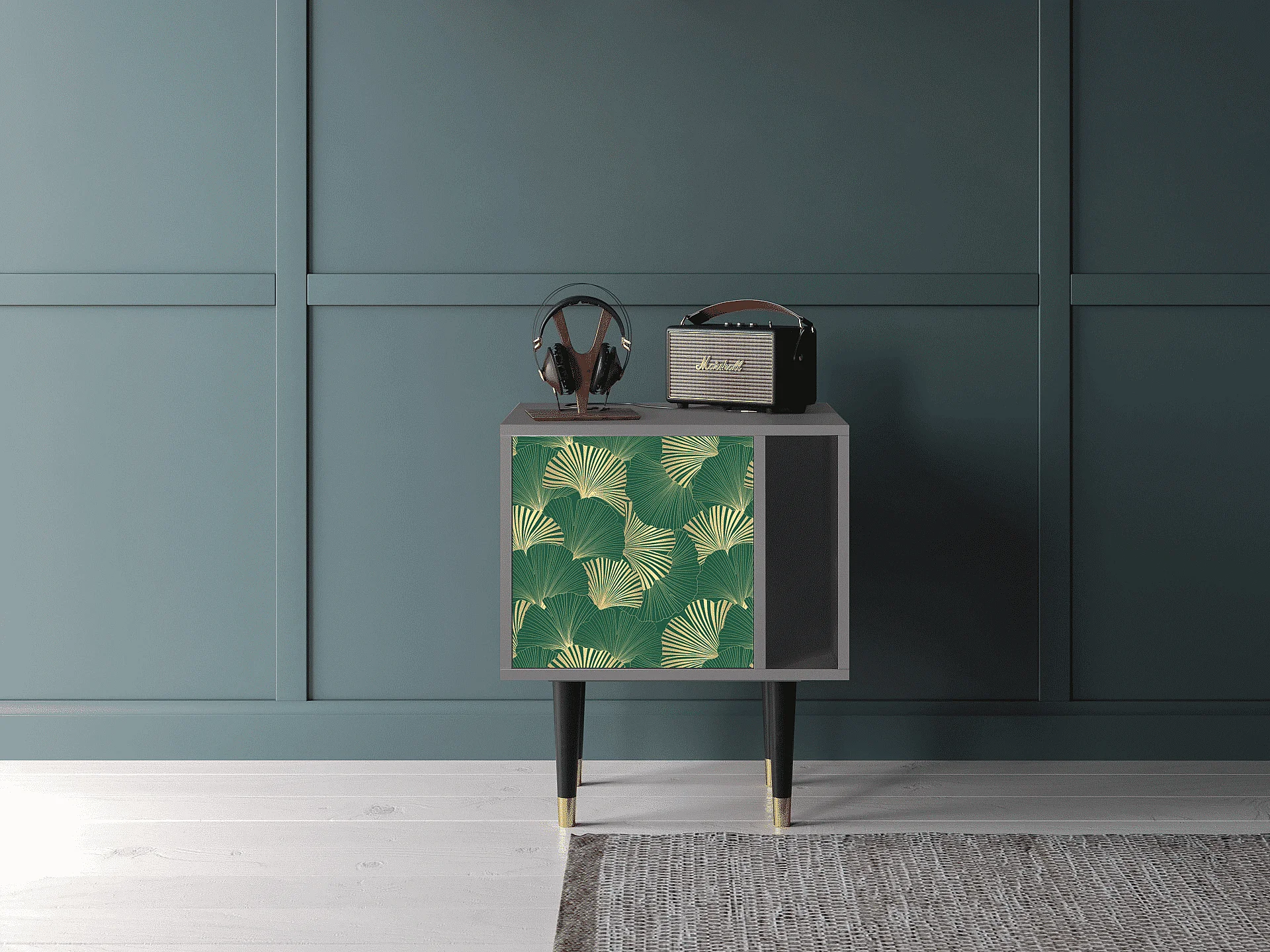 Mesita de noche - 57х69х48 cm - S2 - Gold Ginkgo, Gris