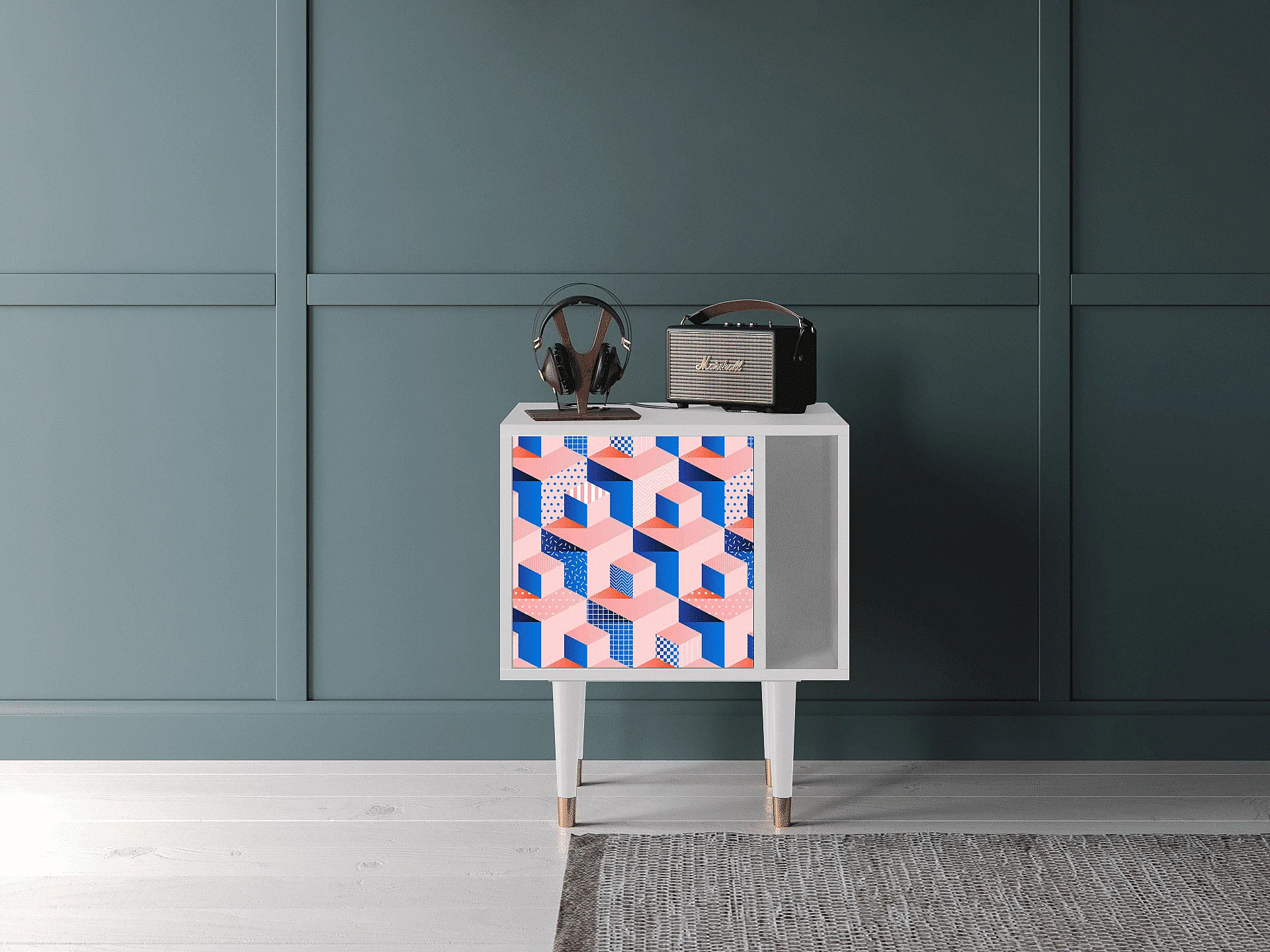 Mesita de noche - 57х69х48 cm - S2 - Pinky Squares, Blanco