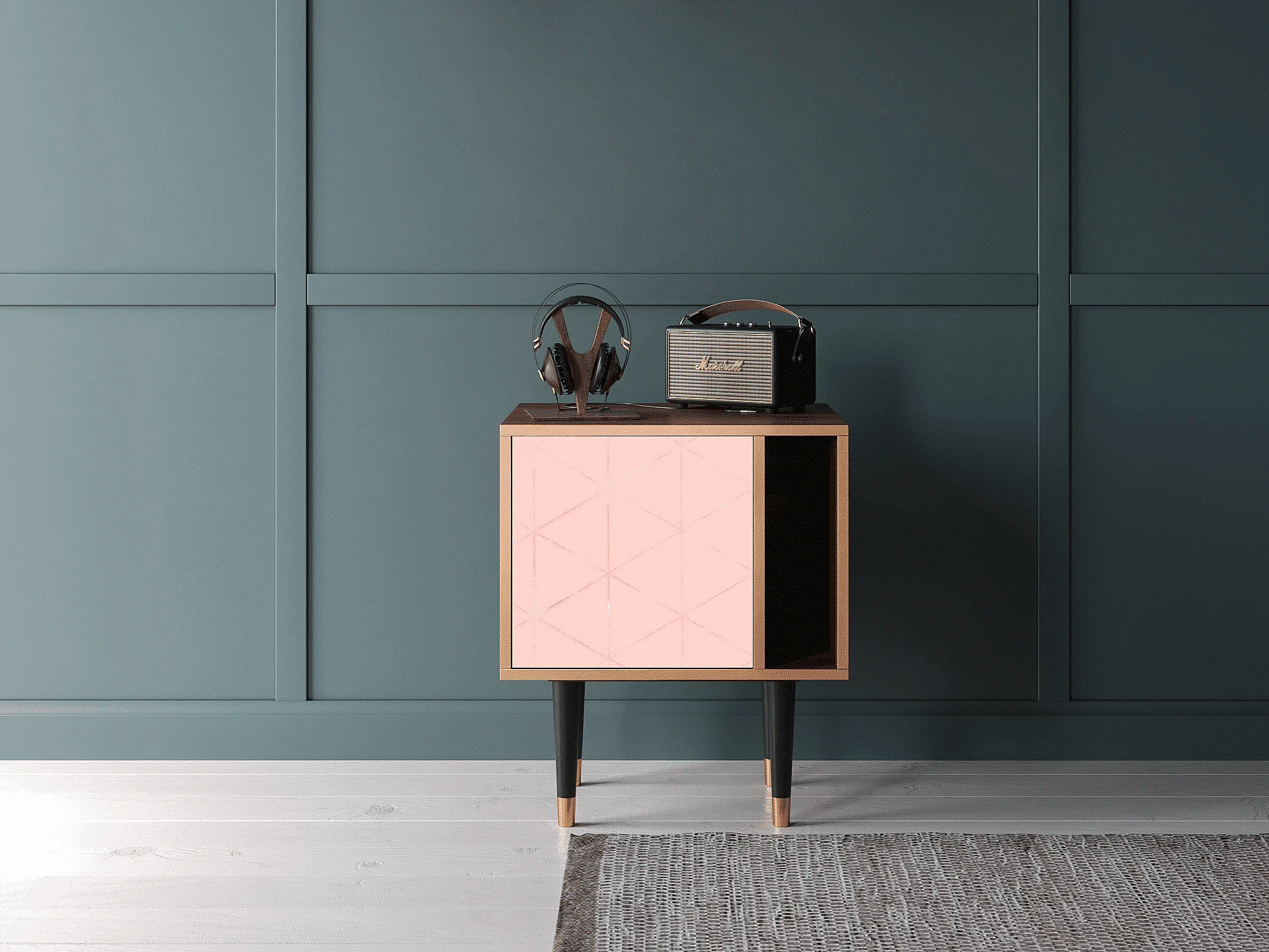 Mesita de noche - 57х69х48 cm - S2 - Rose Quartz, Nogal