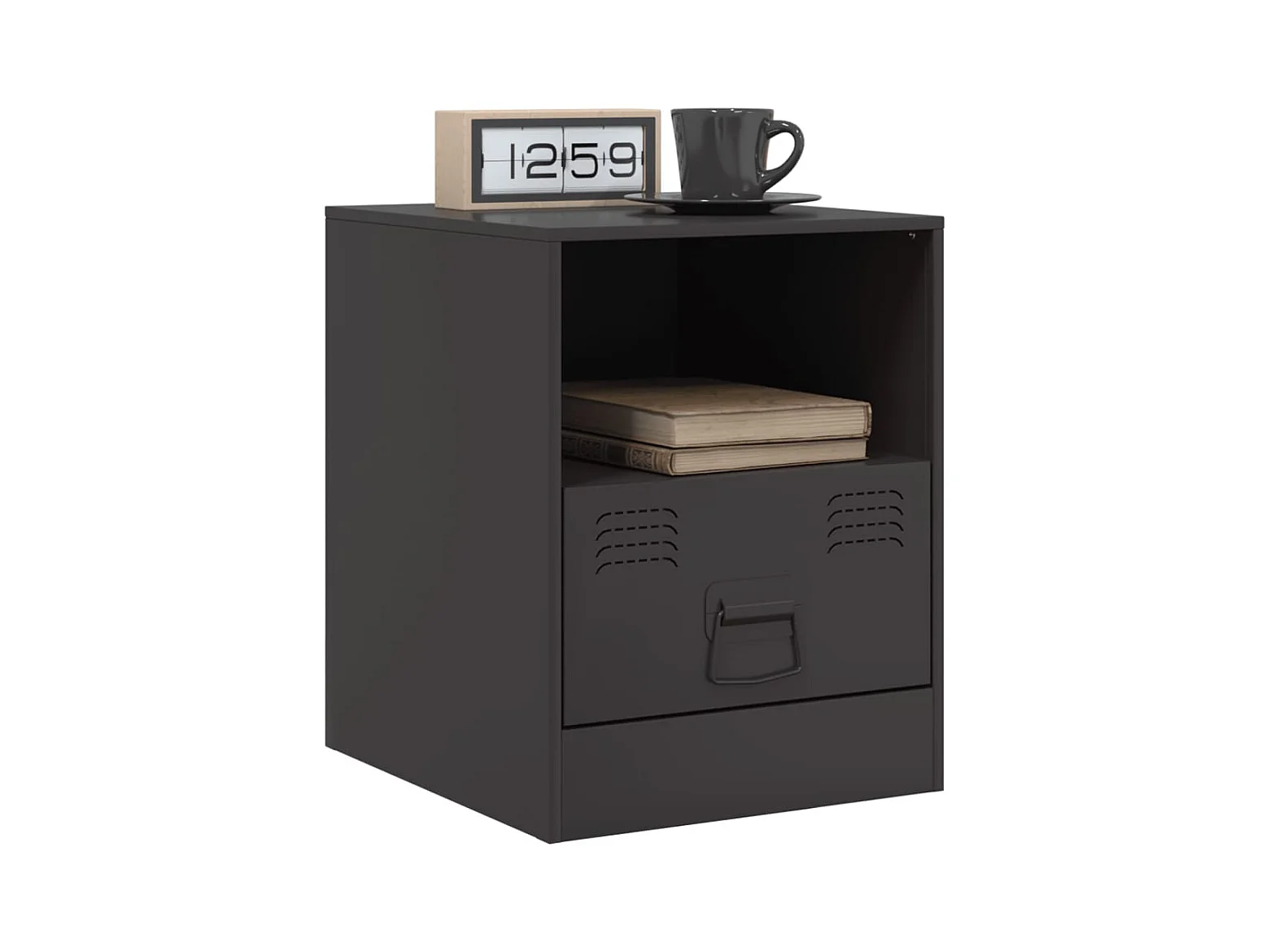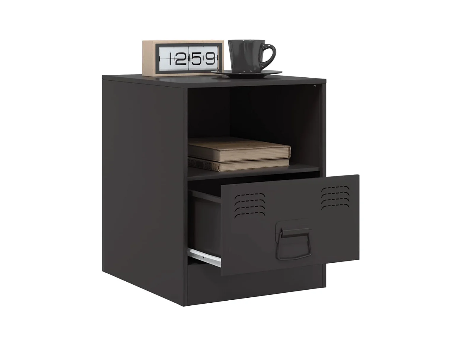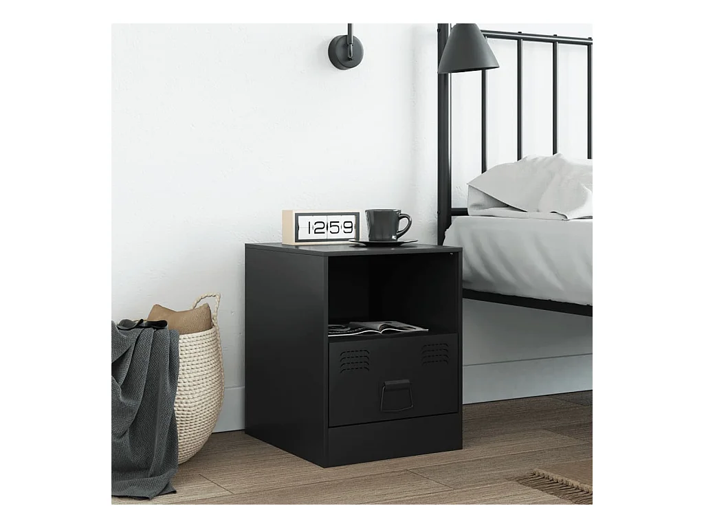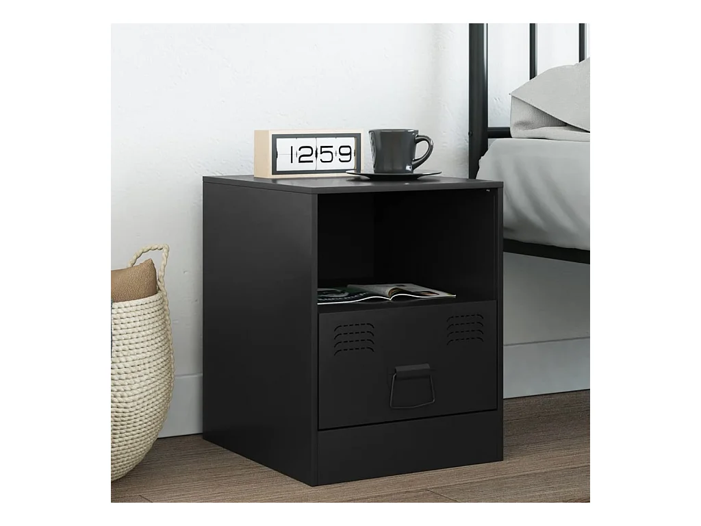 Mesita de noche acero negra 34,5x39x44 cm ES583351