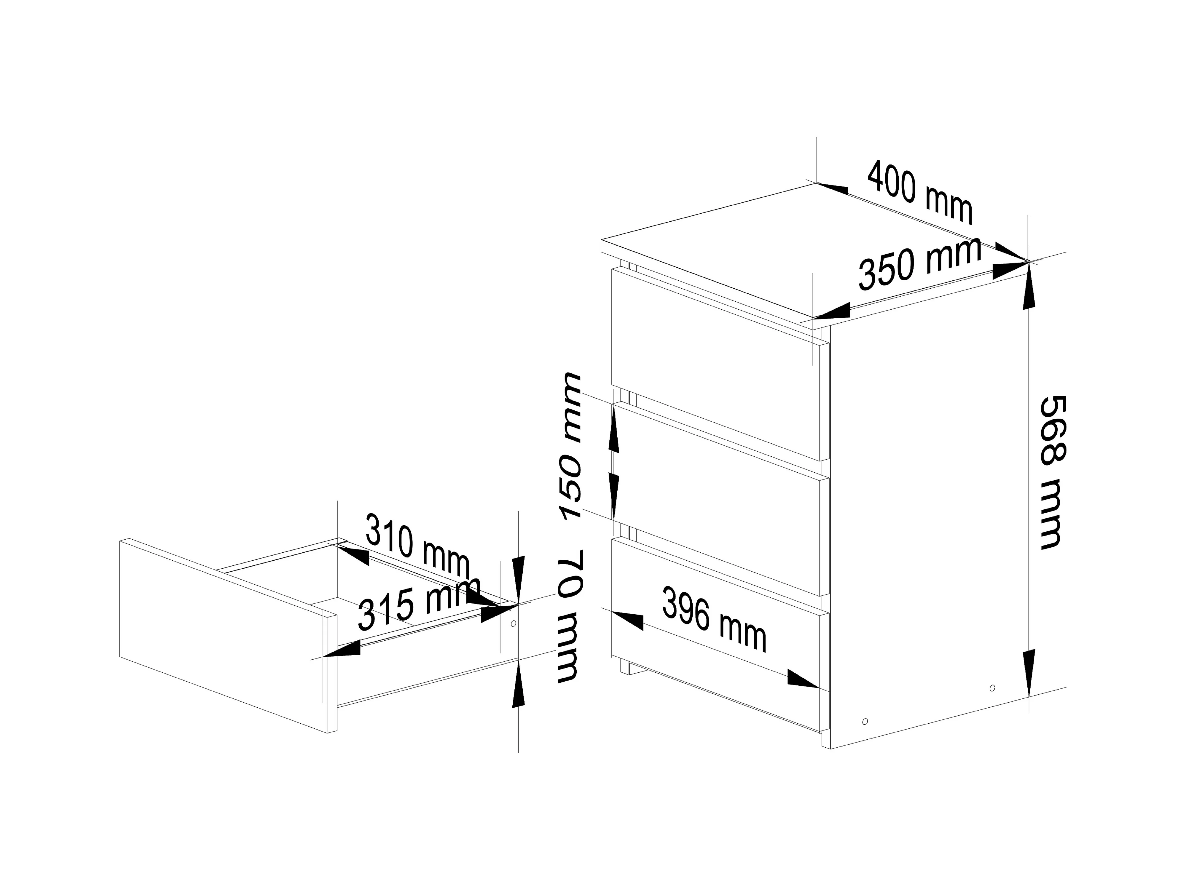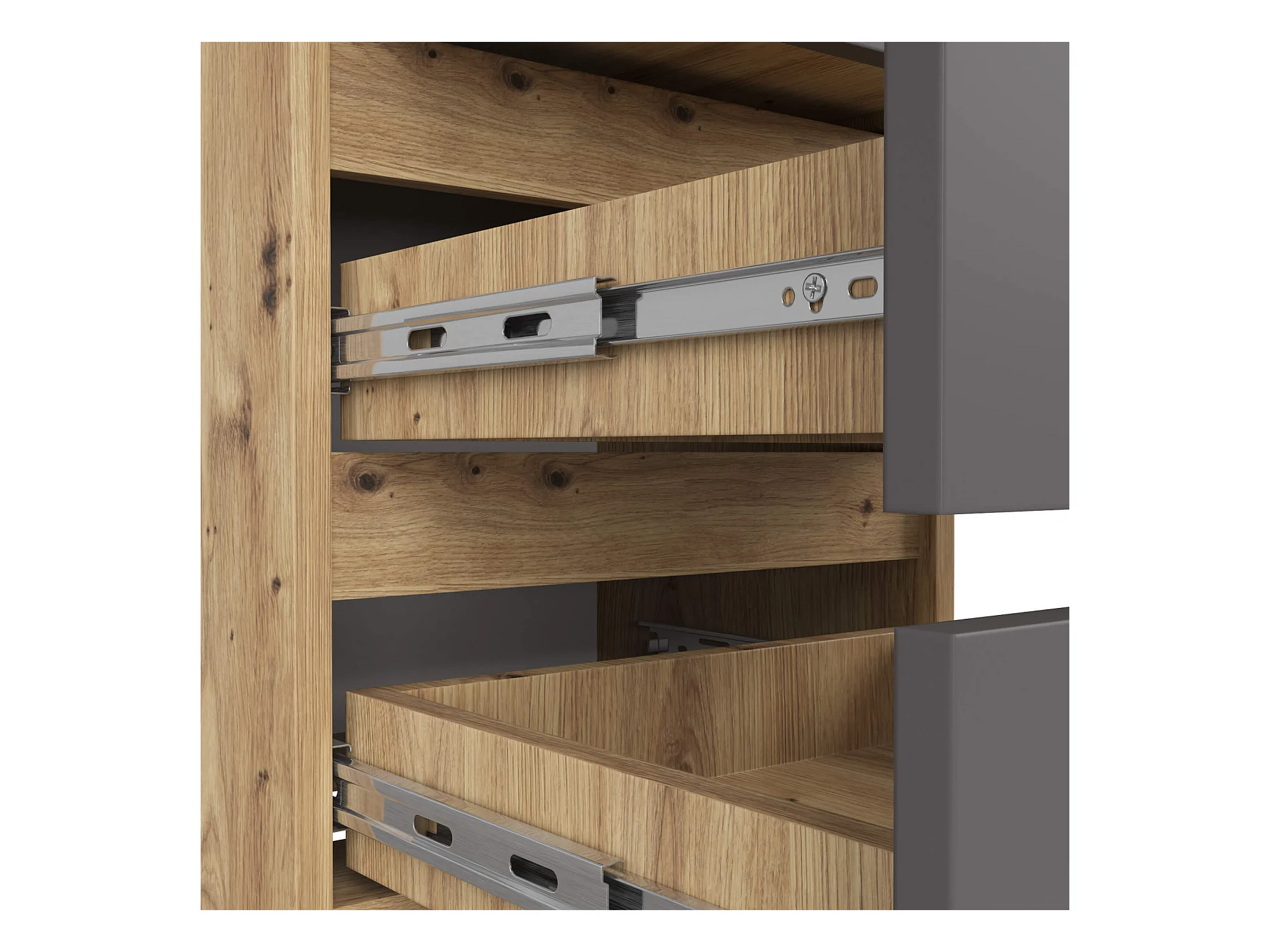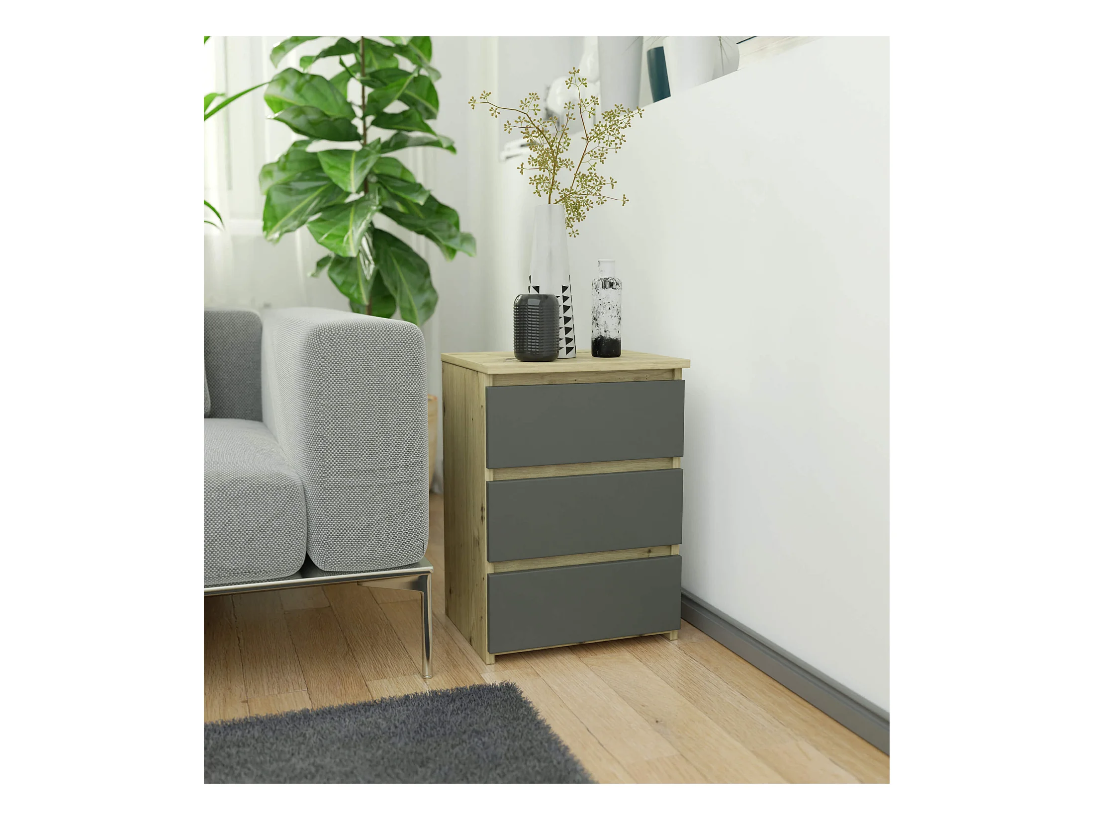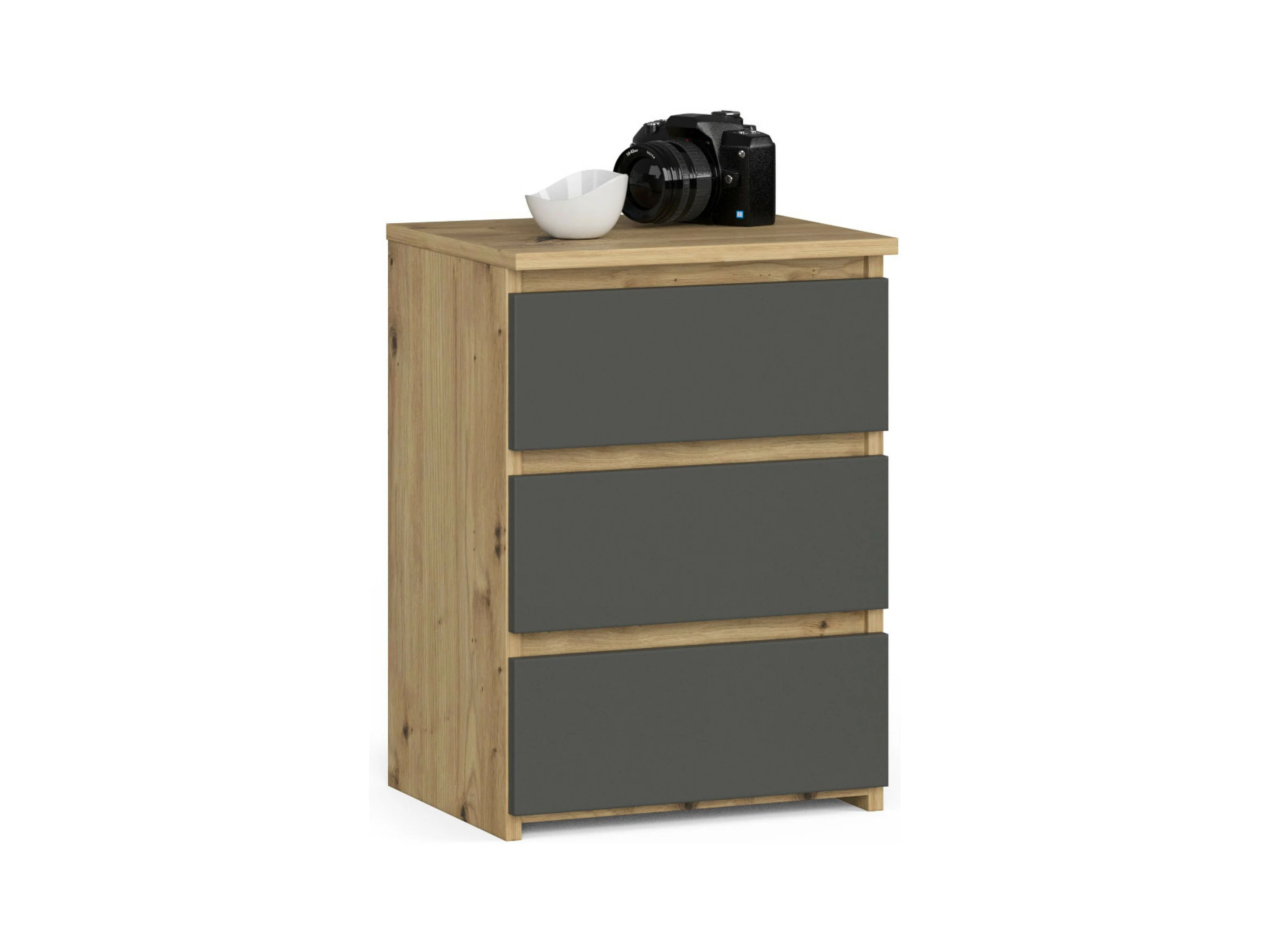 Mesita de noche AKORD CL3 Roble Artisan 40 cm 3 cajones frentes frente en color Grafito Gris 40x35x57 cm