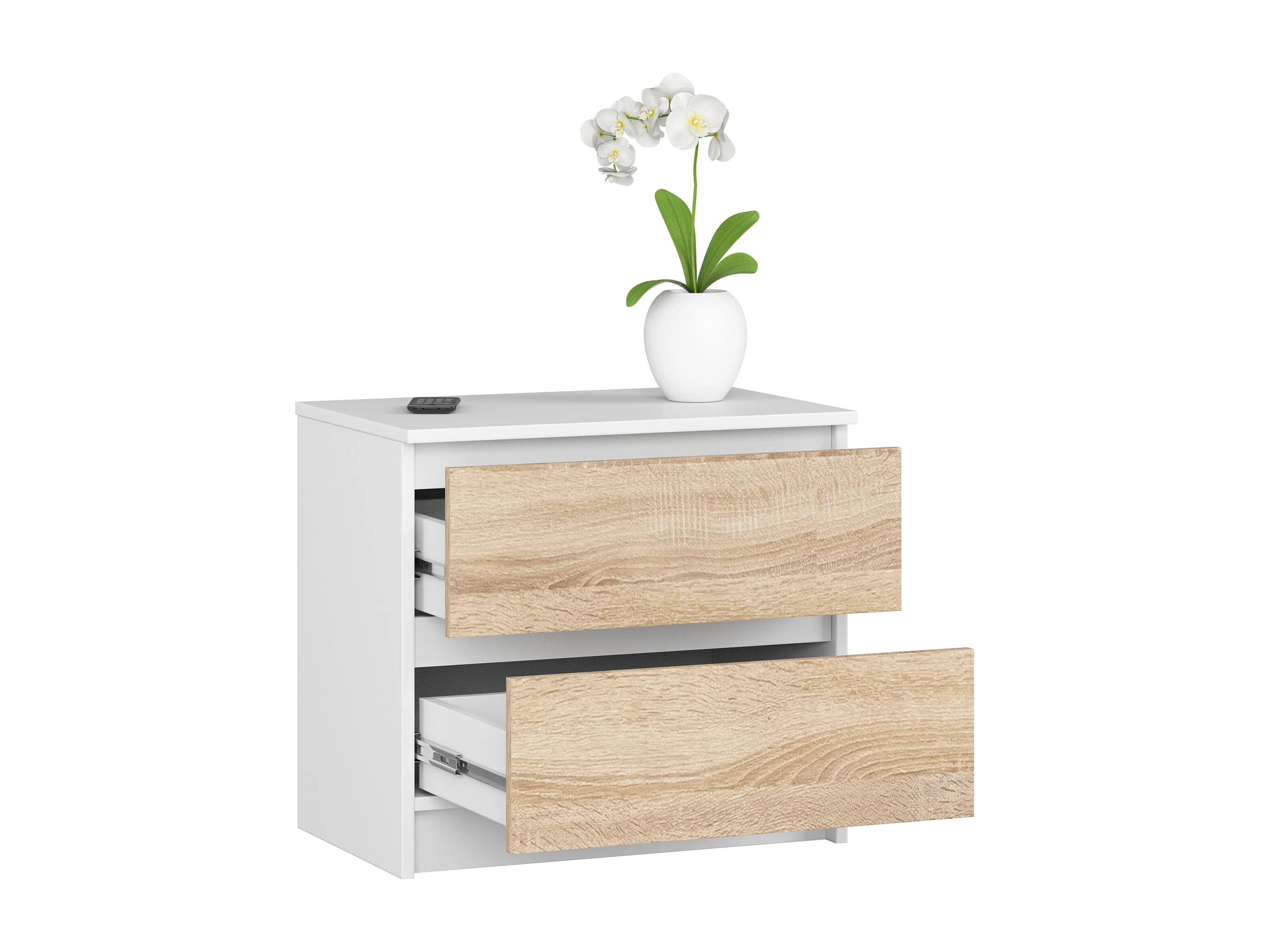 Mesita de noche AKORD K60 Blanco 60 cm 2 cajones frente en color Roble Sonoma 60x40x55 cm