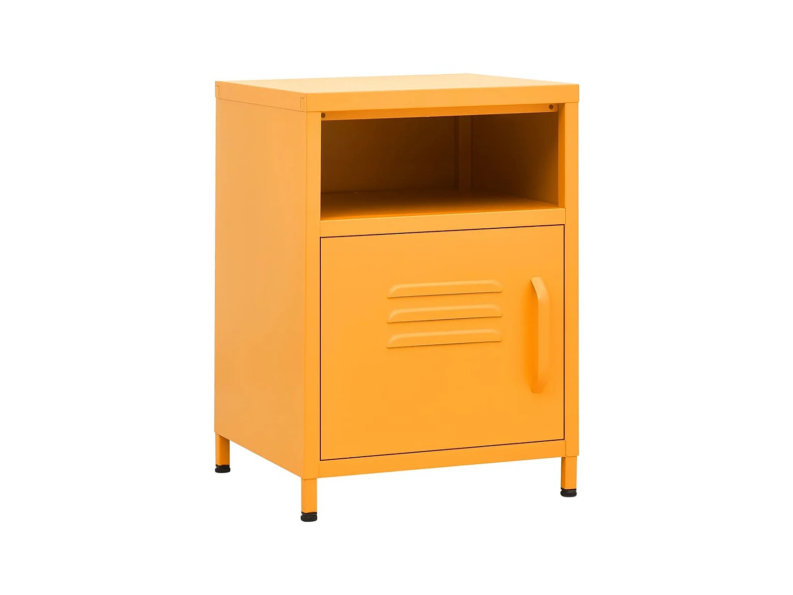 Mesita de noche de acero amarillo mostaza 35x35x51 cm