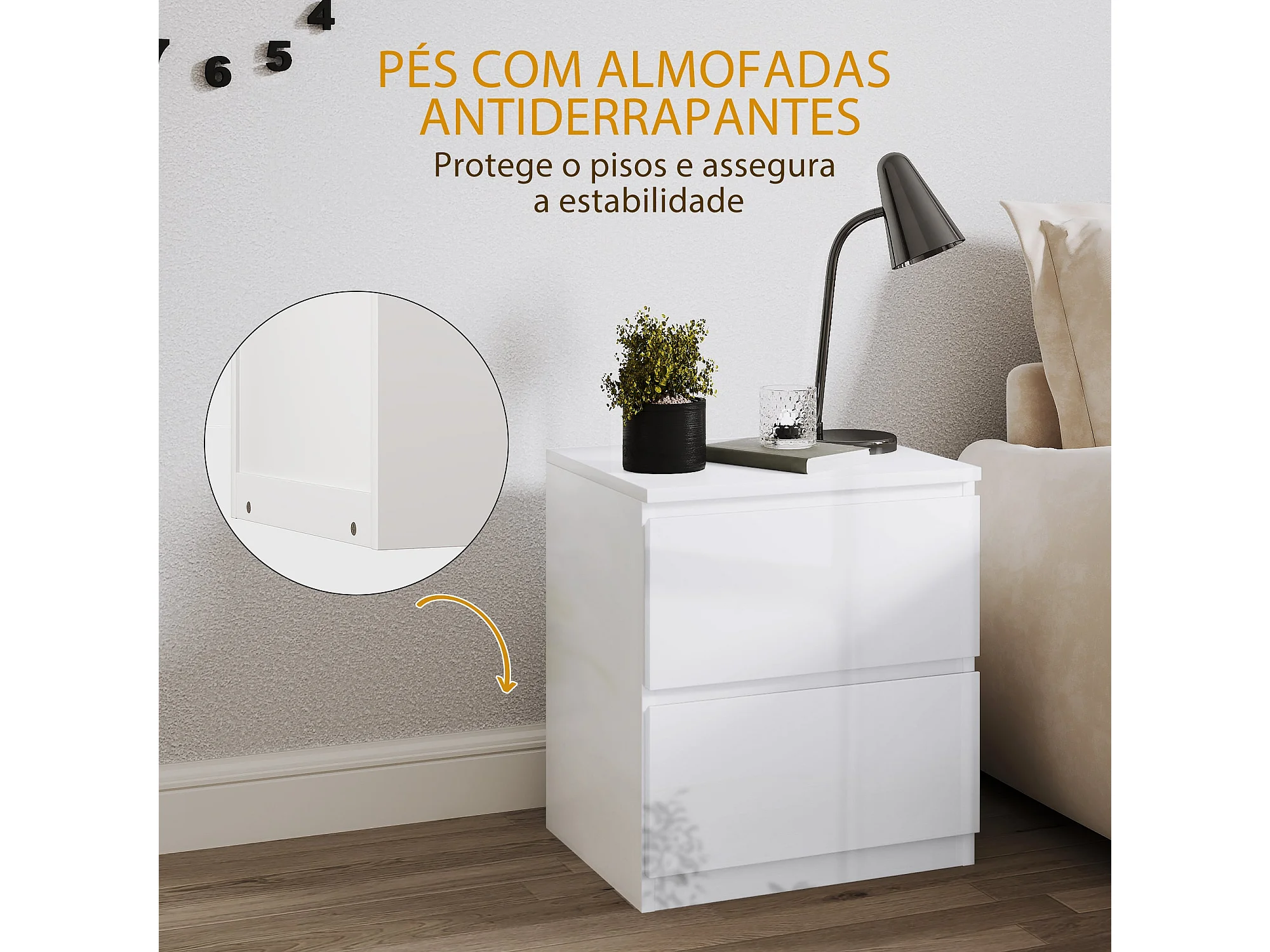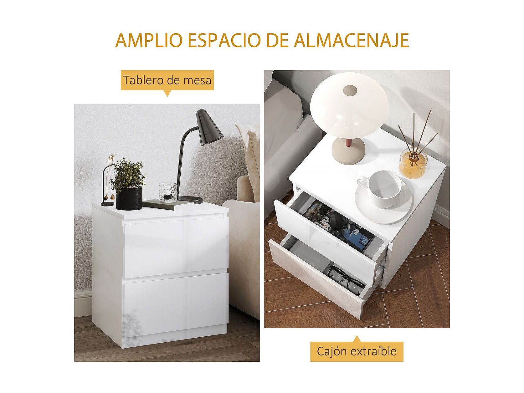 Mesita de noche Amazonita Homcom 2 cajones blanco brillo 45x40x34 cm