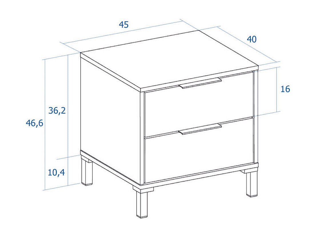 Mesita de noche New Aura 2 cajones beige 43x39,6x33,5 cm
