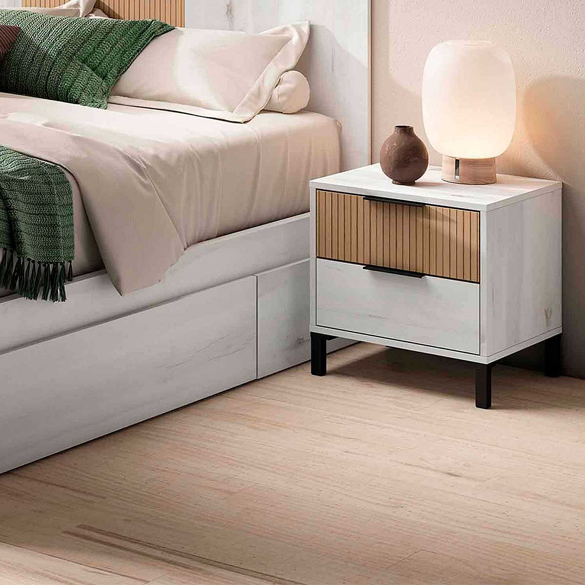 Mesita de noche Arles 2 cajones albo/rayado 46,7x45x40 cm