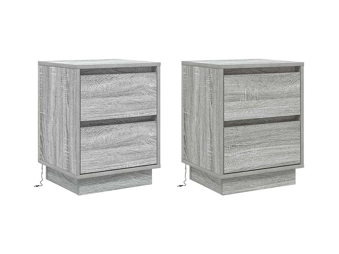 Mesita de noche | Mesilla de noche 2 uds. madera ingeniería gris Sonoma 40x35x50 cm