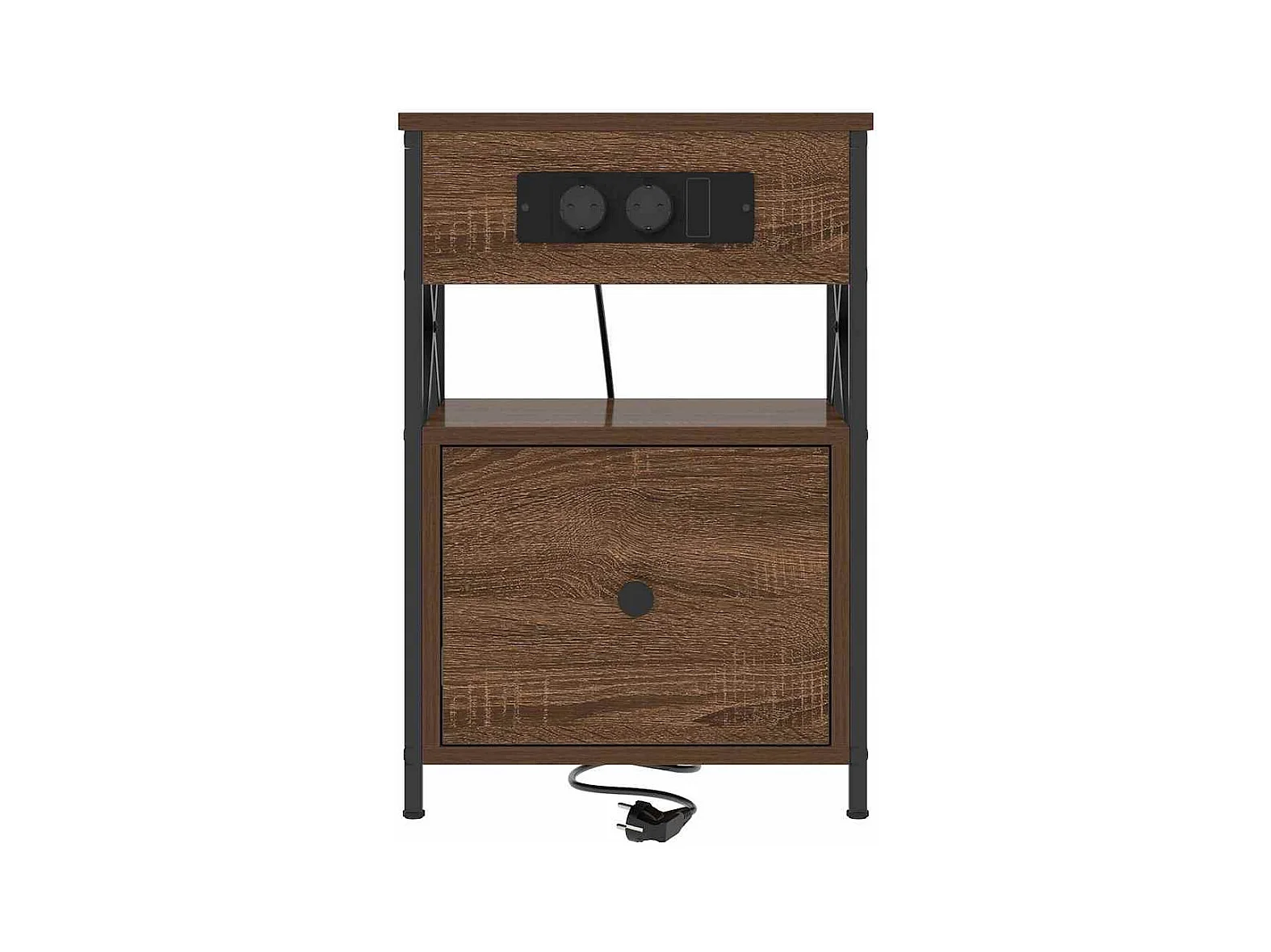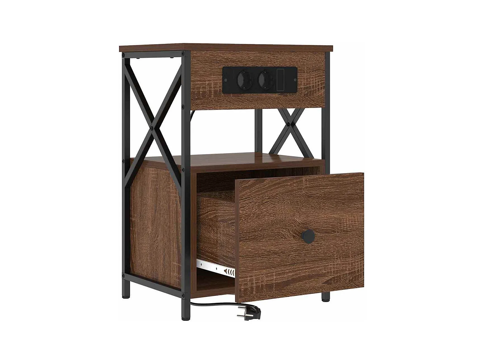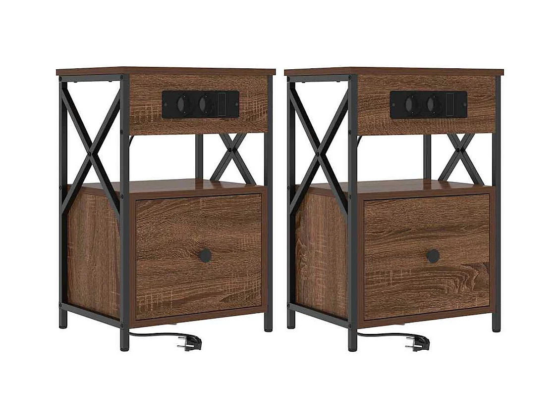 Mesita de Noche | Mesa auxiliar con Estación de Carga 2 uds. Roble Marrón