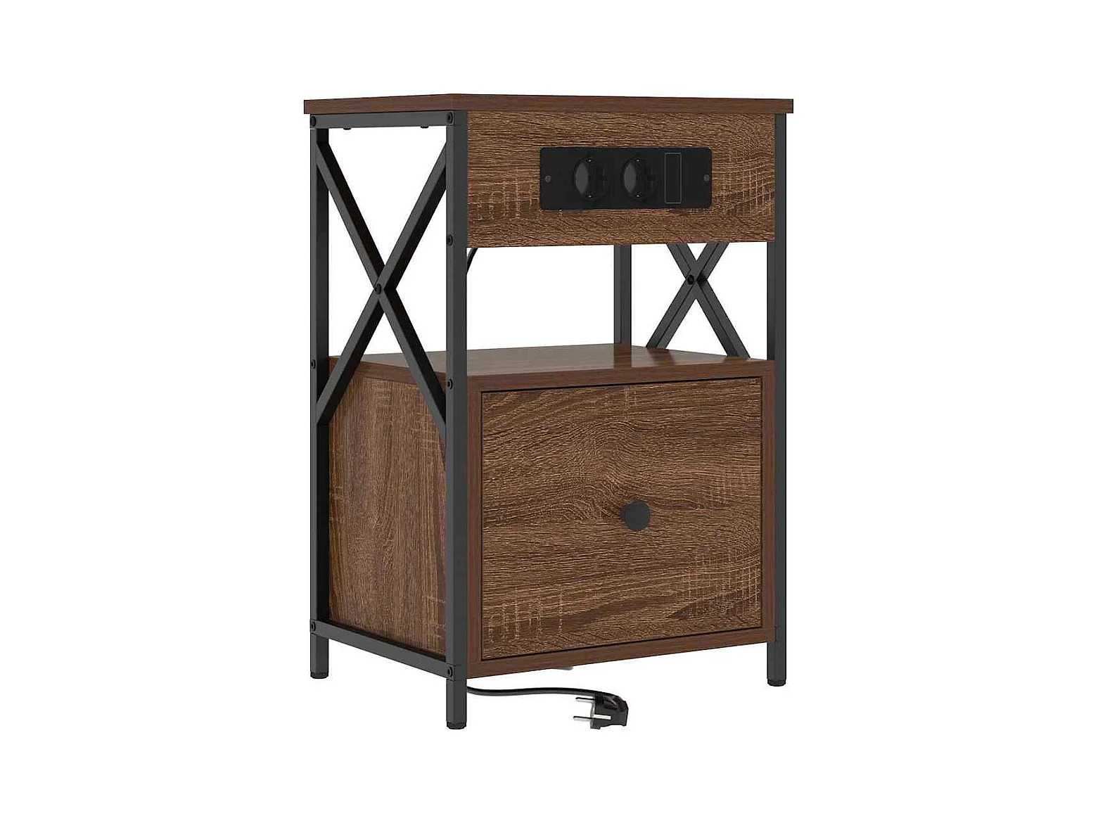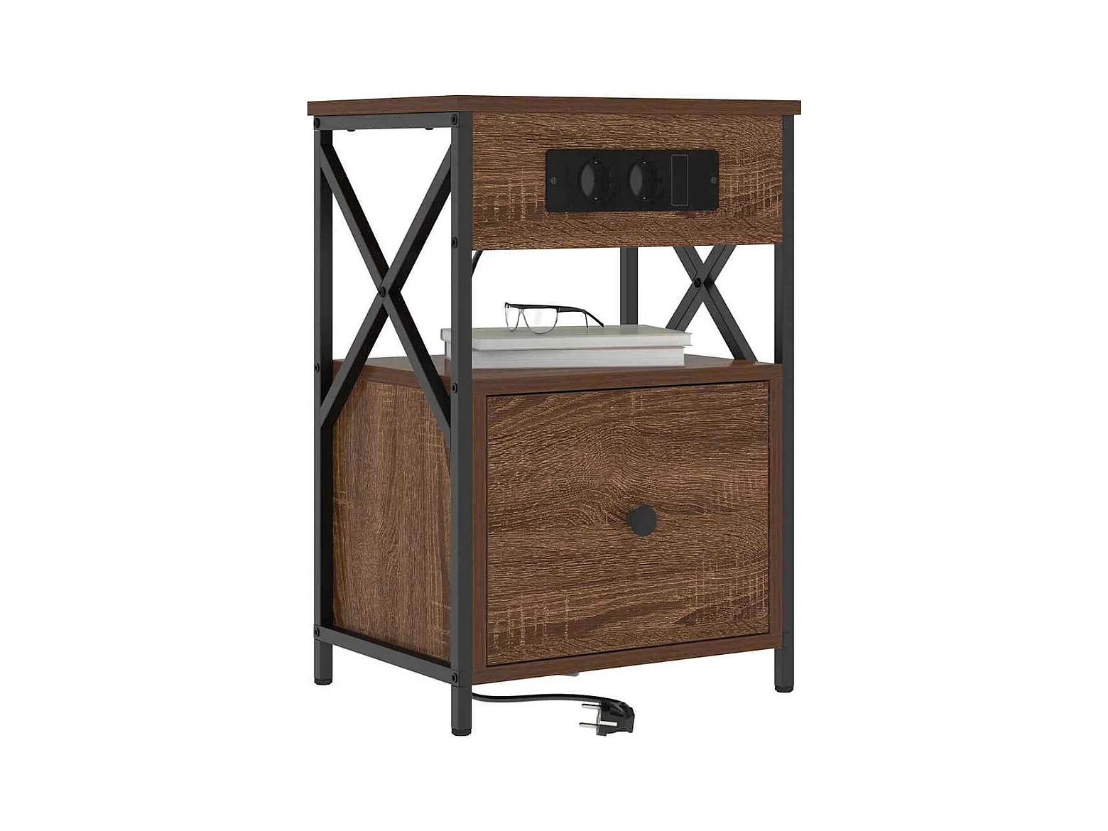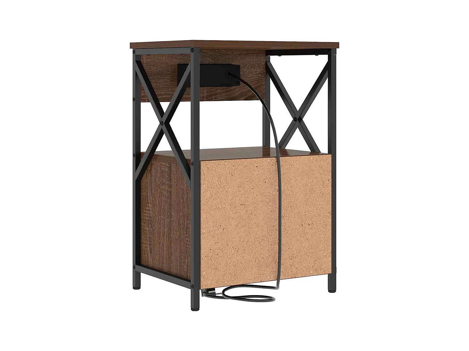Mesita de Noche | Mesa auxiliar con Estación de Carga 2 uds. Roble Marrón