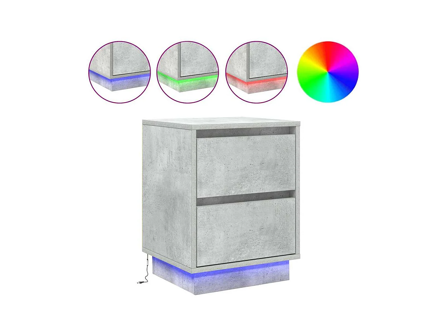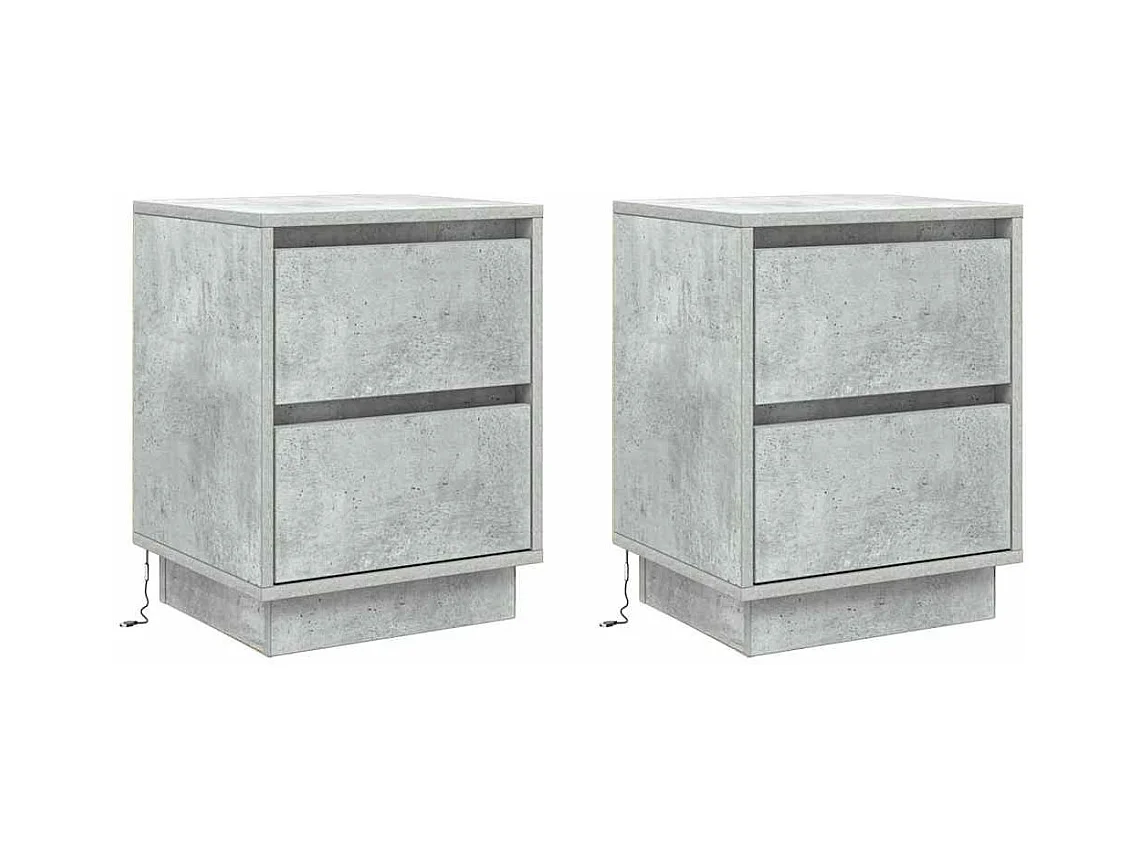 Pack 2 uds Mesilla de noche | Mesitas de noche con 3 cajones gris hormigón 39x35x65 cm