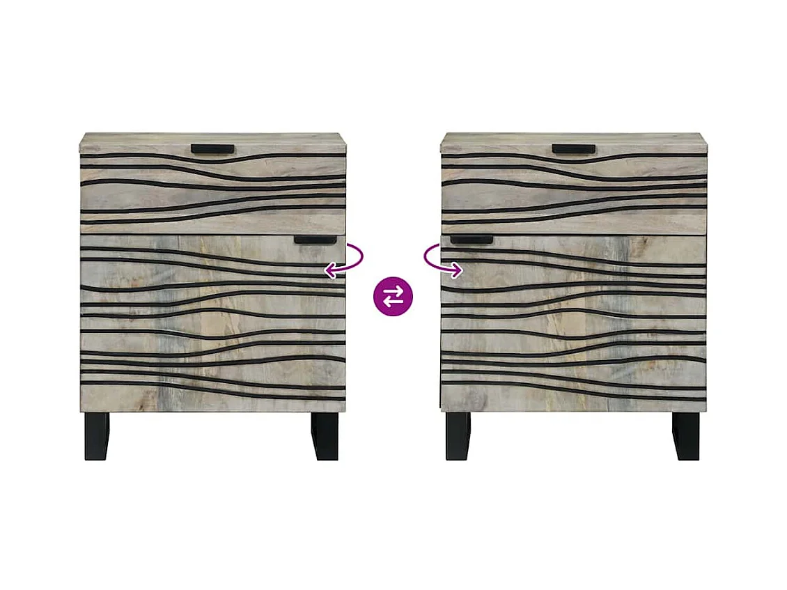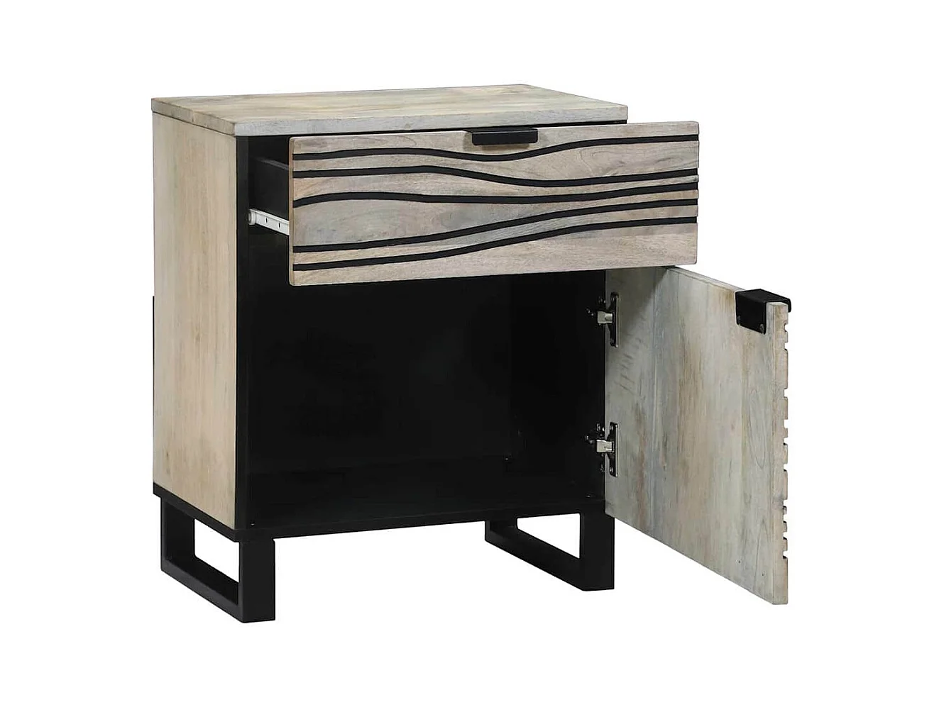 Mesita de noche | Mesilla de noche madera maciza de mango blanca 50x34x60 cm