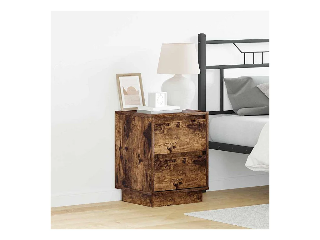 Mesita de noche | Mesilla de noche madera de ingeniería roble ahumado 40x35x50 cm