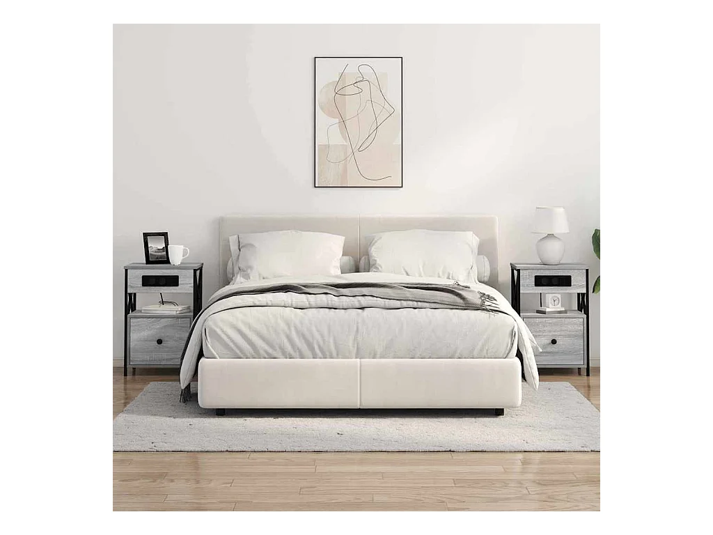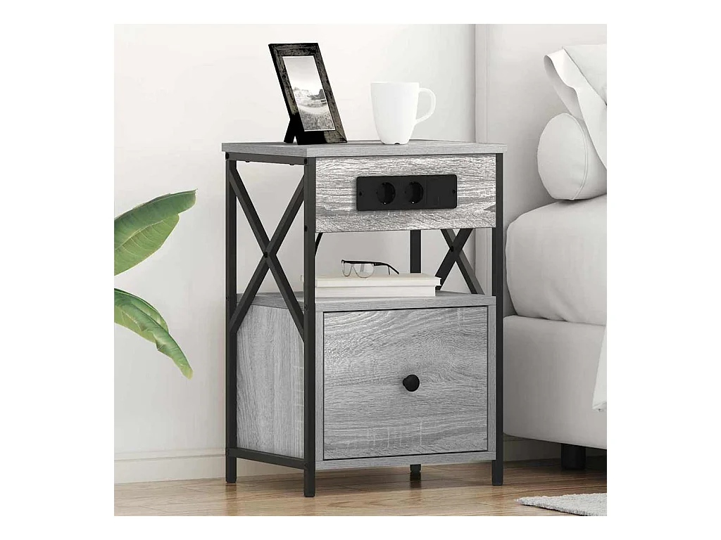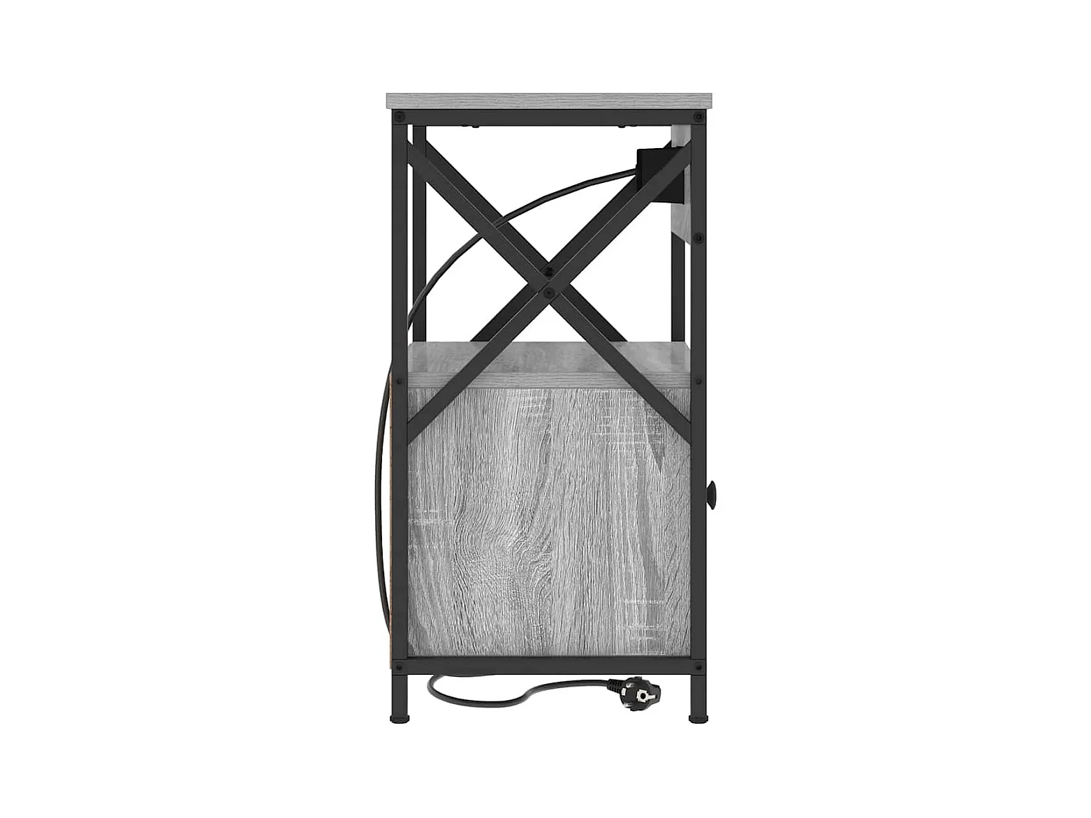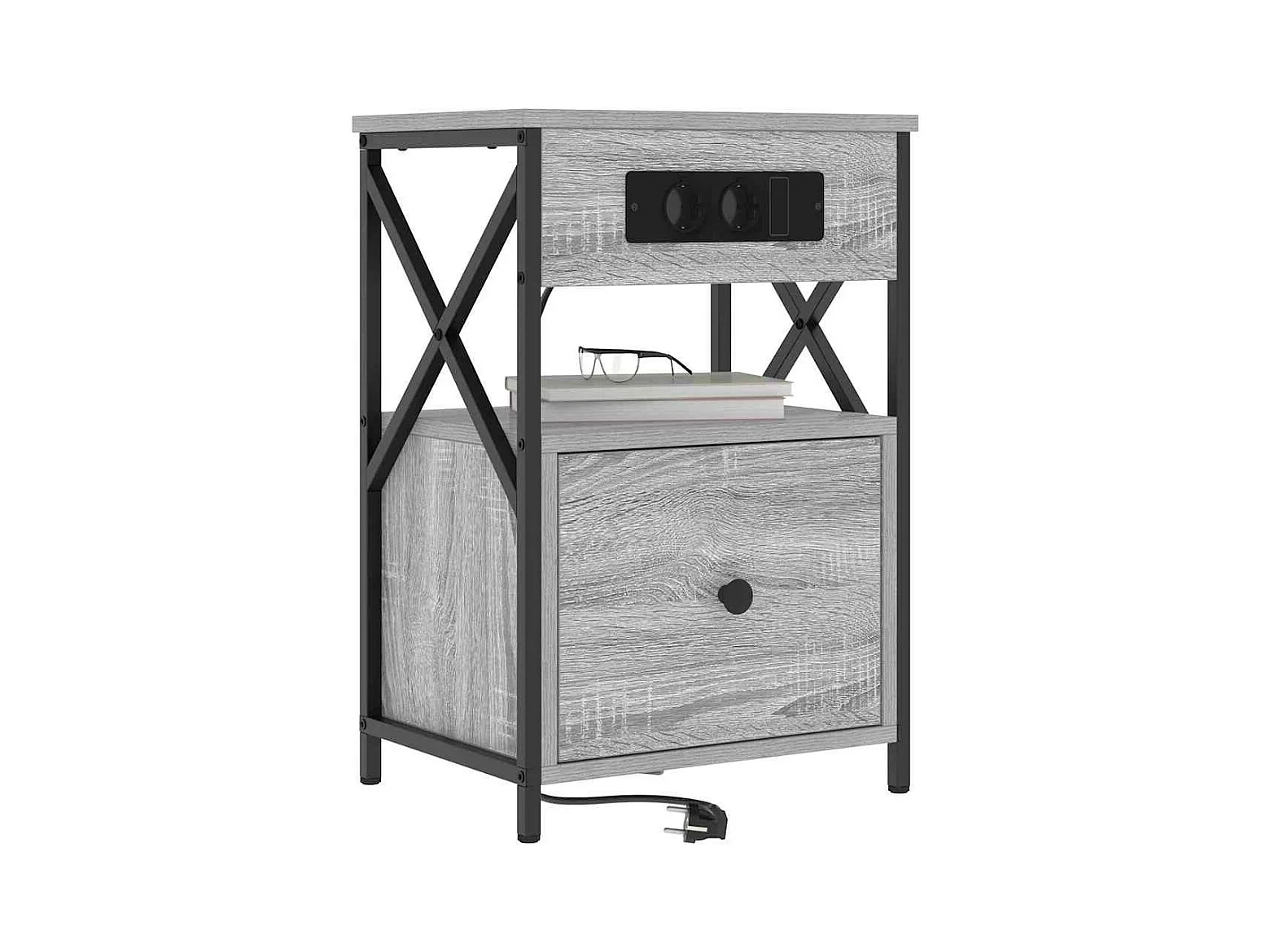 Mesita de Noche | Mesa auxiliar con Estación de Carga Gris sonoma