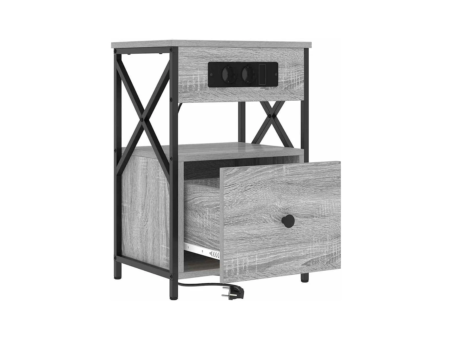 Mesita de Noche | Mesa auxiliar con Estación de Carga con cajón Gris sonoma