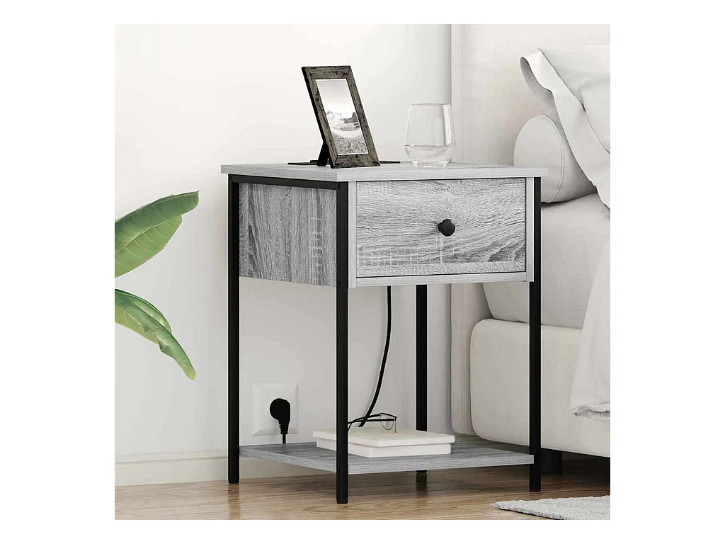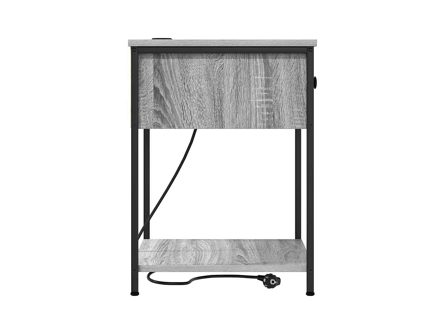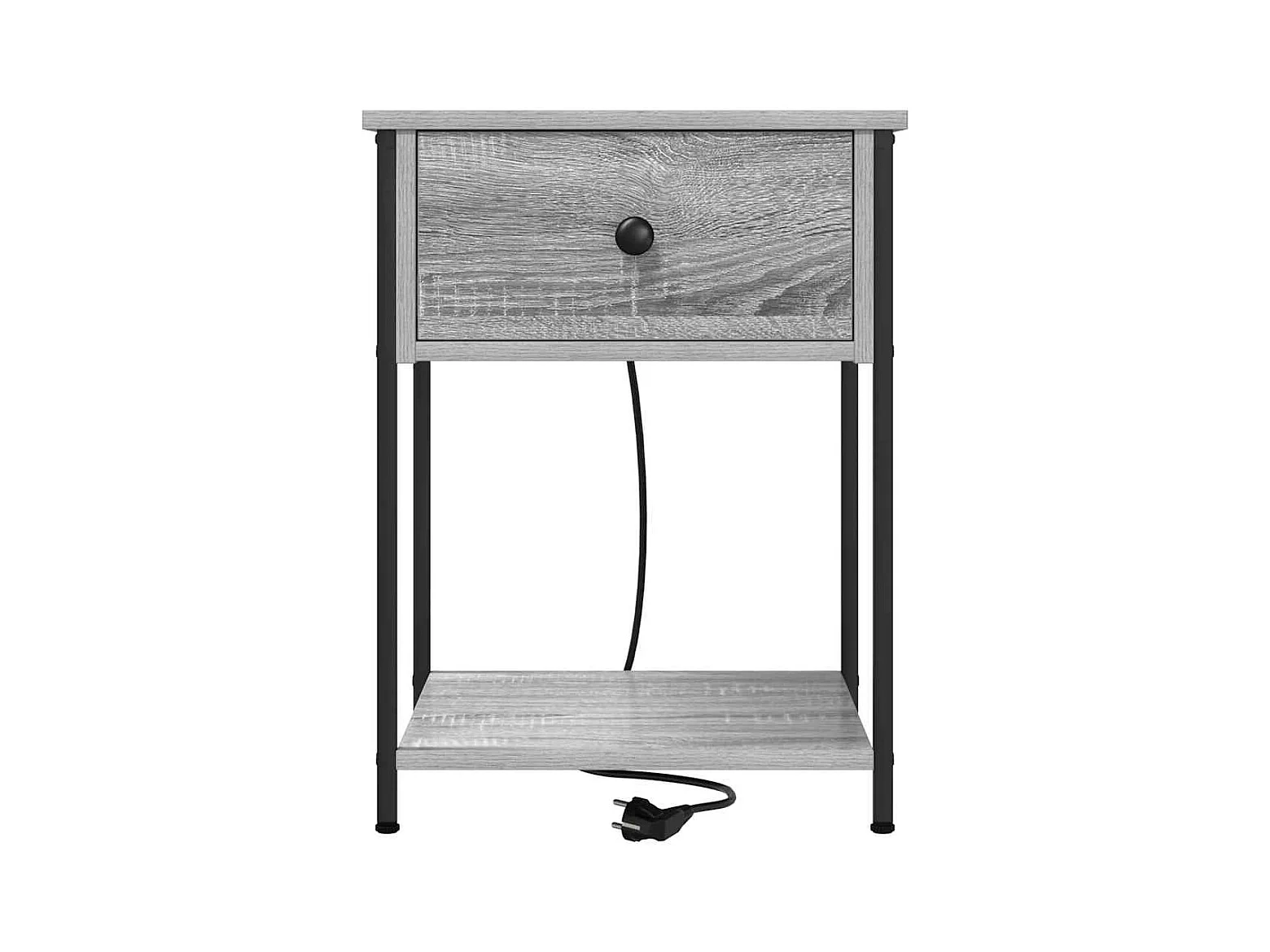 Mesita de Noche | Mesa auxiliar con Estación de Carga Gris sonoma