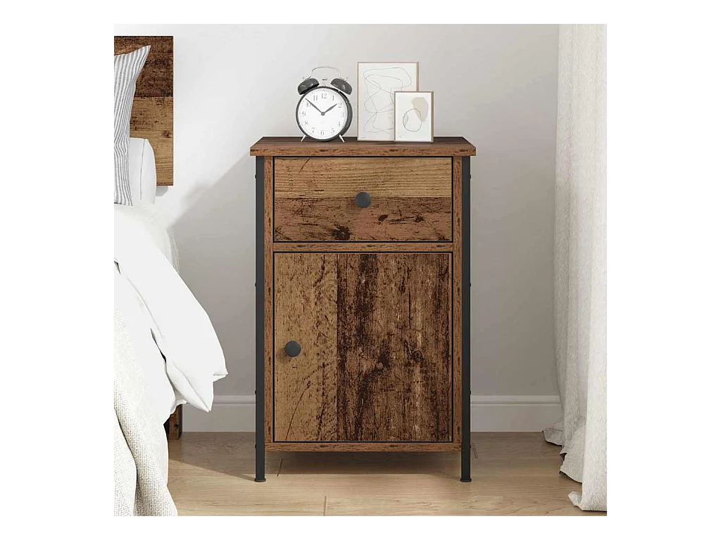 Mesita de Noche | Armario de Noche con cajón Madera vieja 40x42x60 cm