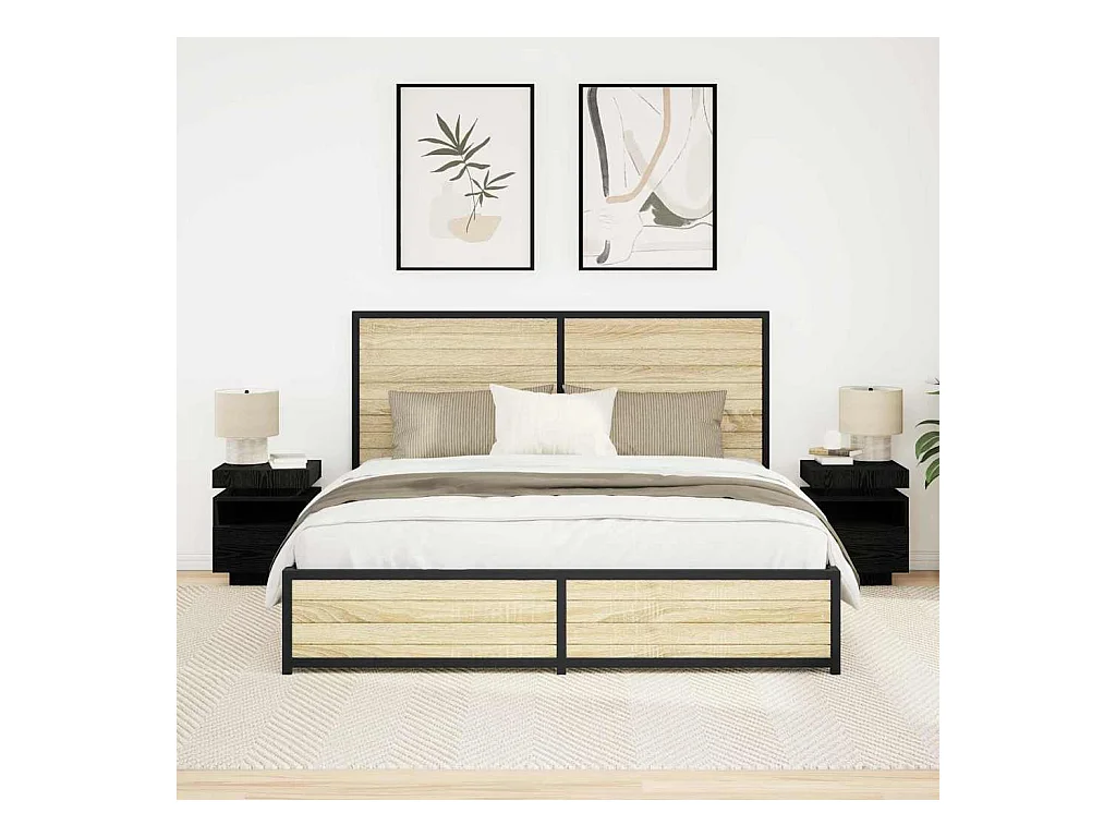 Mesitas de noche | Mesilla de noche 2 uds madera de ingeniería negro 40x36x60 cm