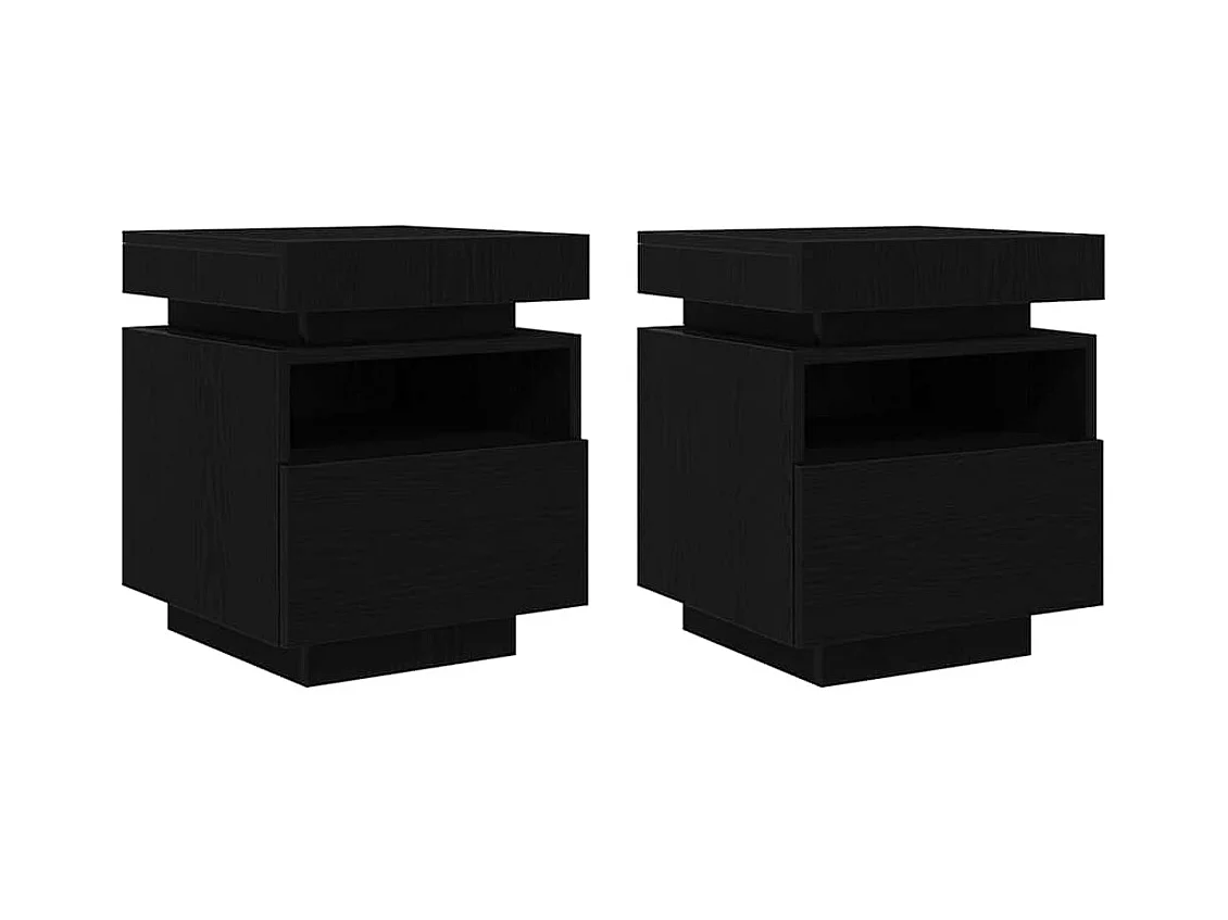 Mesita de Noche | Armario de Noche | Mesa auxiliar con cajón 2 uds. Roble negro 40x39x48.5 cm