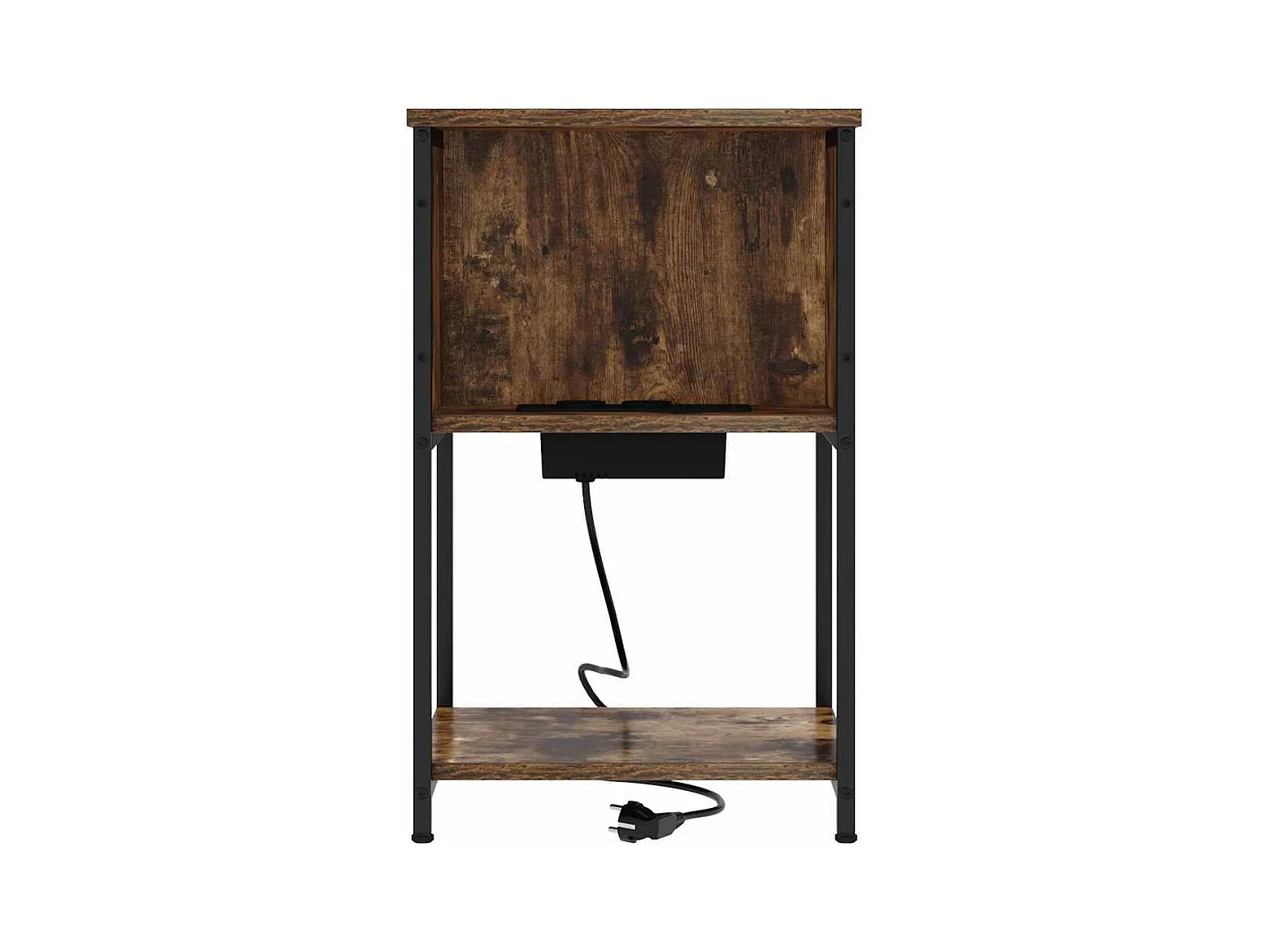 Mesita de Noche | Mesa auxiliar con Estación de Carga con cajón Roble ahumado
