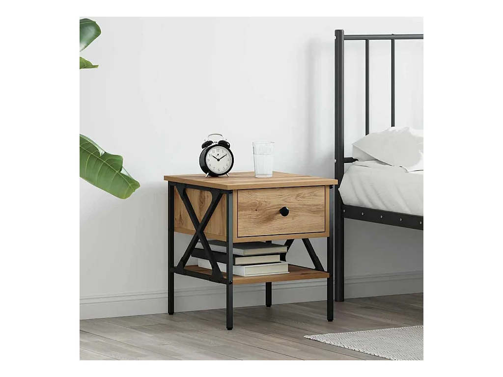 Mesita de Noche | Mesa auxiliar con cajón Roble artisan 40x42x50 cm