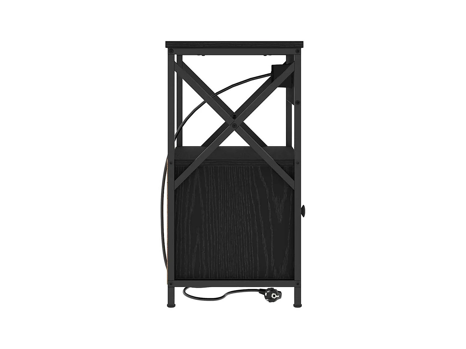 Mesita de Noche | Mesa auxiliar con Estación de Carga con cajón Roble negro