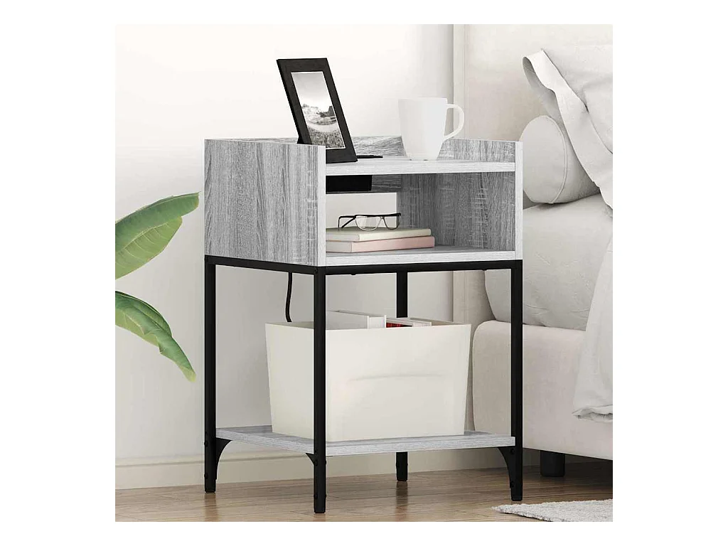 Mesita de noche | Mesilla de noche madera contrachapada gris Sonoma 40x40x63 cm
