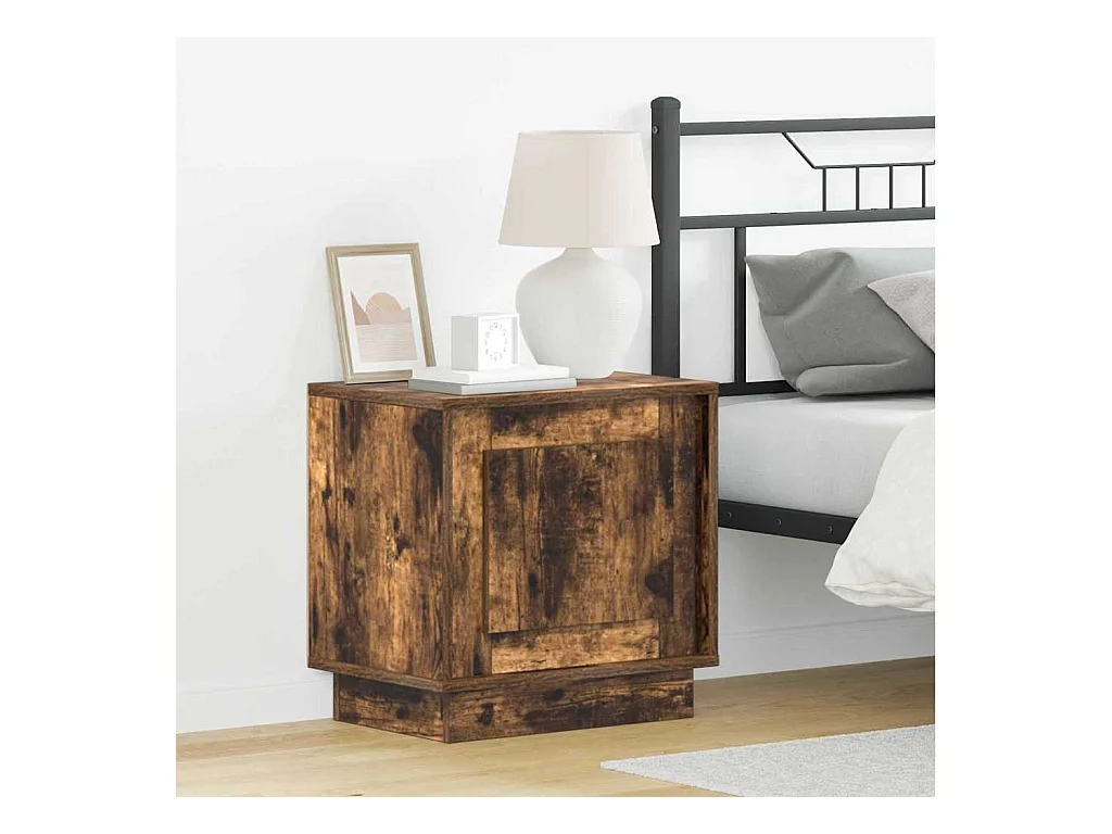 Mesita de noche | Mesilla de noche madera contrachapada roble ahumado 40x35x65 cm