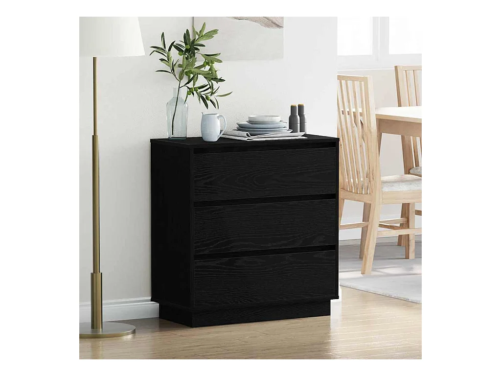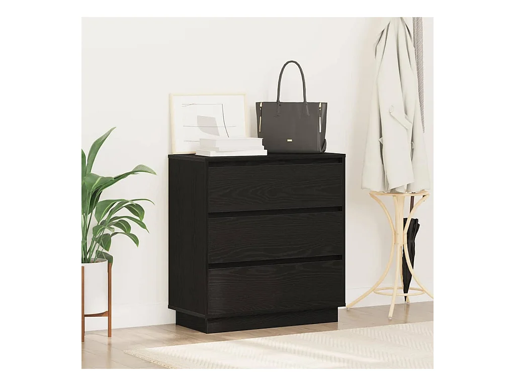 Mesita de Noche | Armario de Noche Negro 71x34.5x75 cm Madera contrachapada