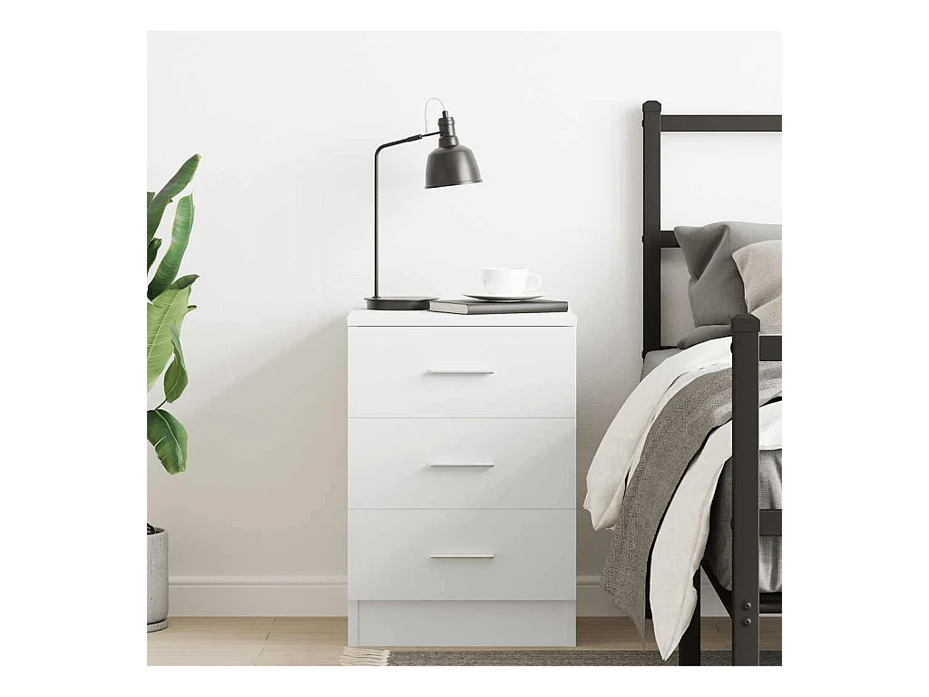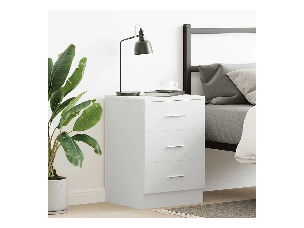 Mesilla de noche con 3 cajones blanca 39x35x65 cm