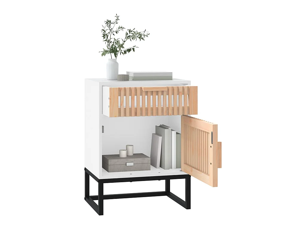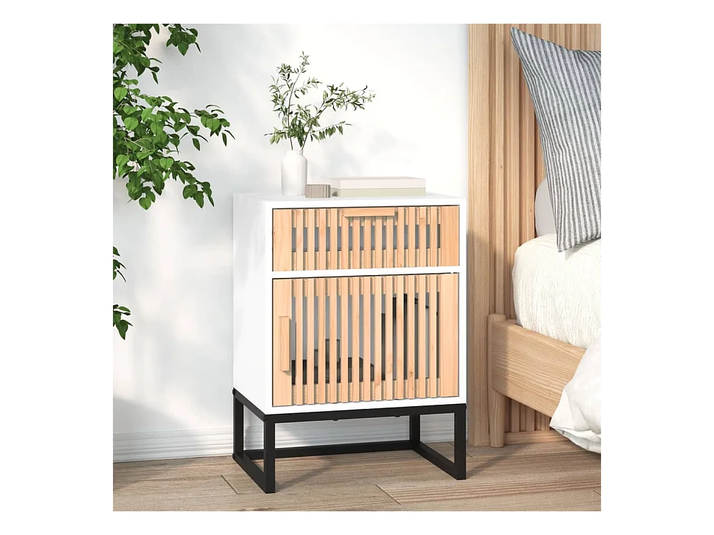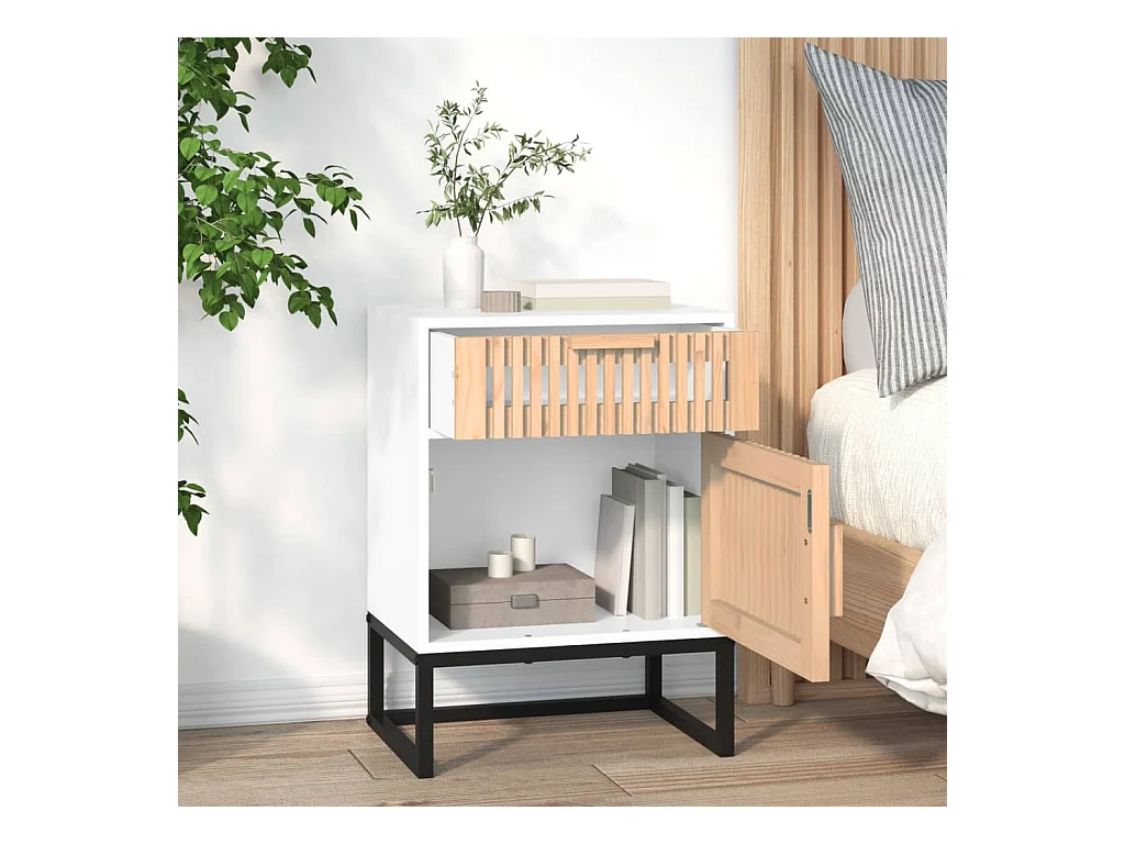 Mesita de noche blanca 40x30x55,5 cm madera contrachapada y hierro