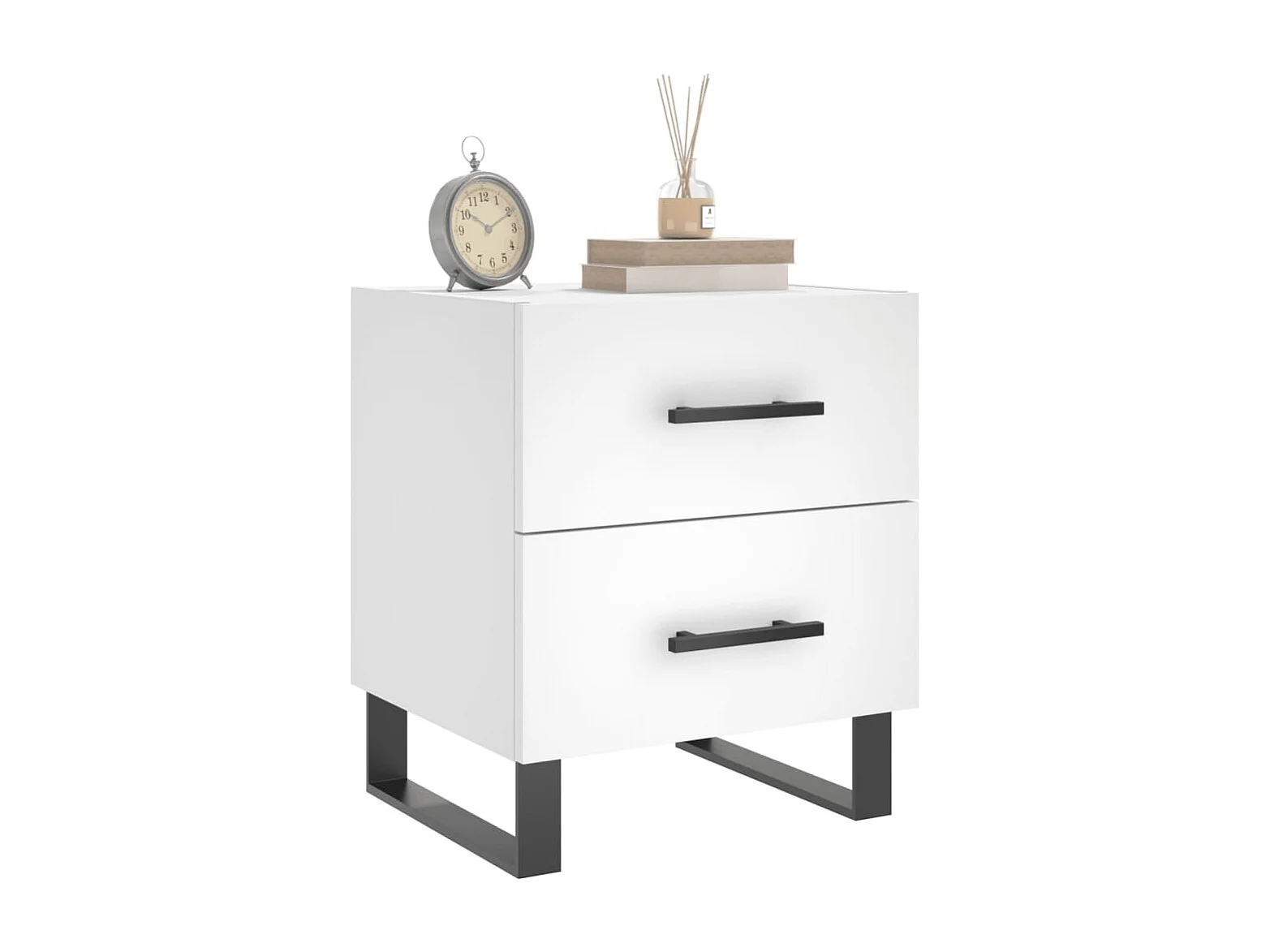 Mesita de noche blanca brillo 40x35x47,5 cm de madera contrachapada