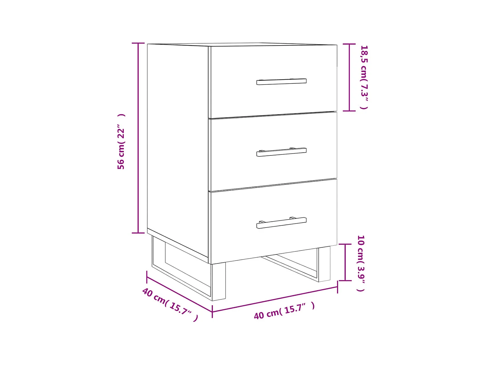 Mesita de noche blanca brillo 40x40x66 cm de madera contrachapada
